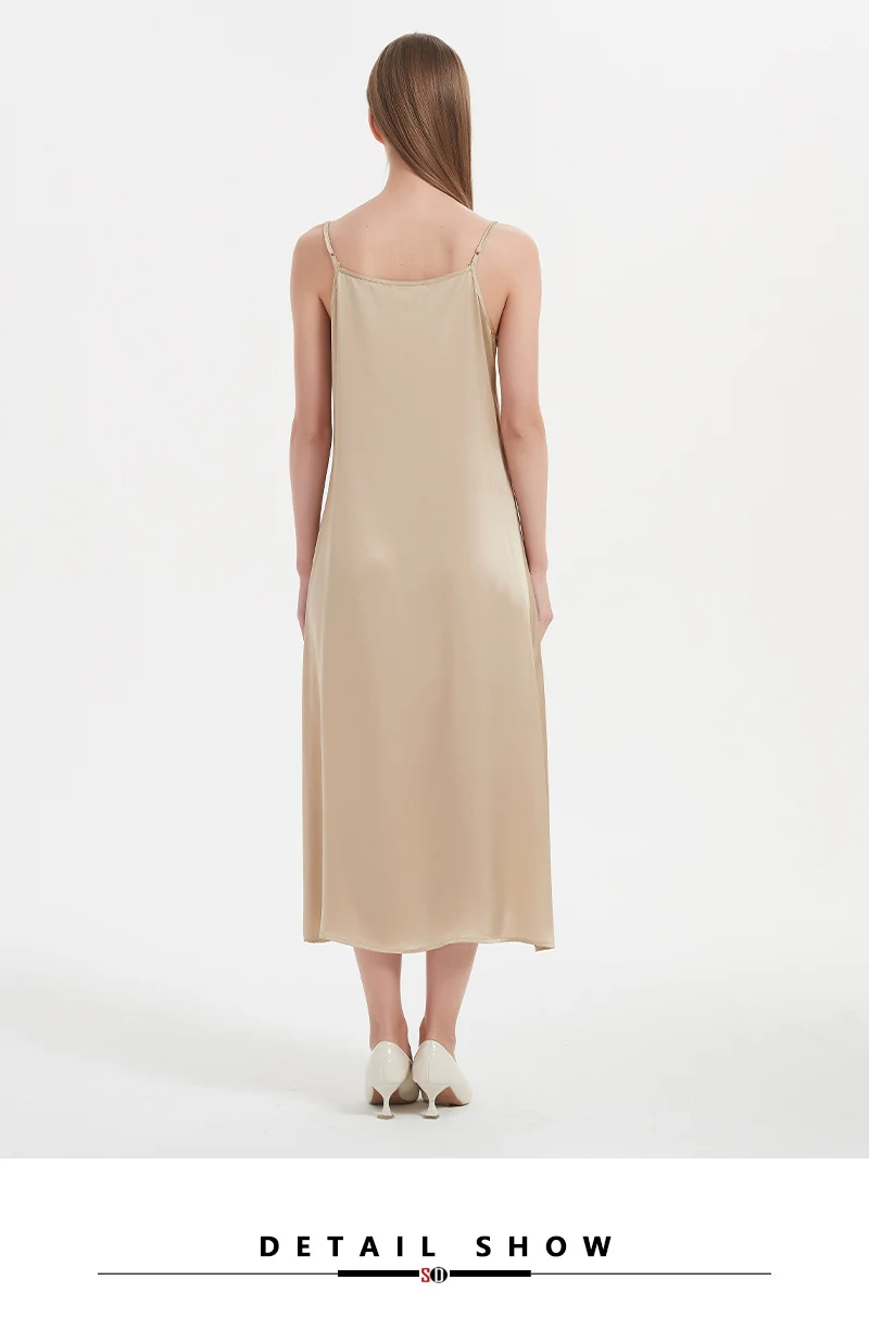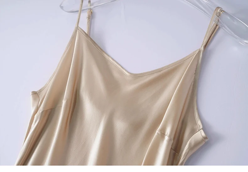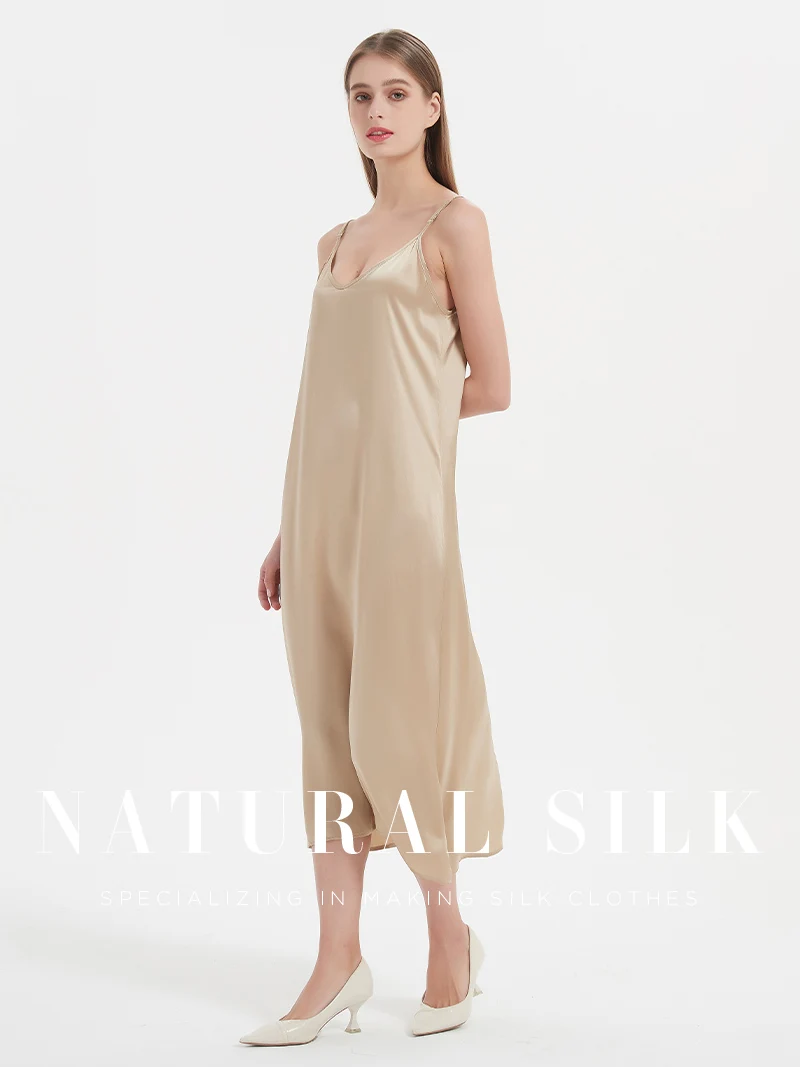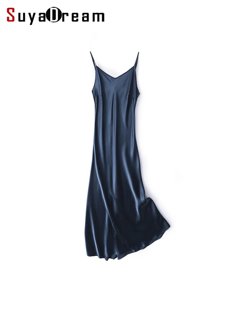 SuyaDream, Woman Long Dress, 100%Real Silk Sleeveless Solid Spaghetti Strap...