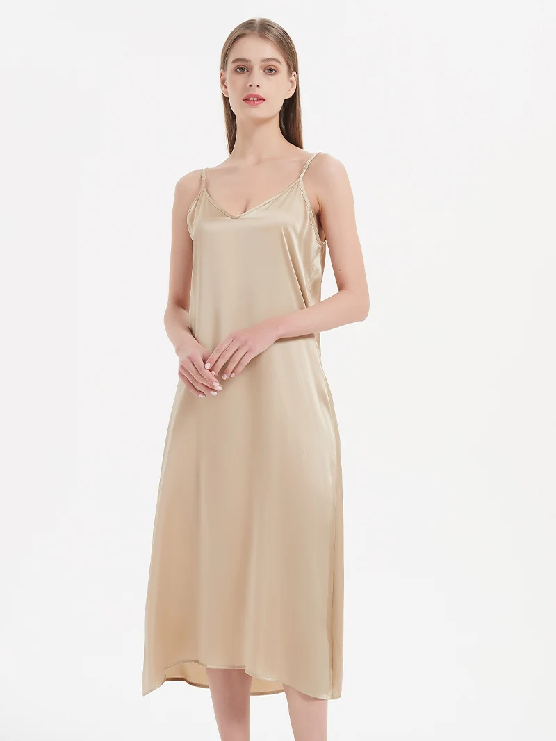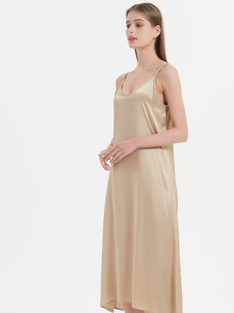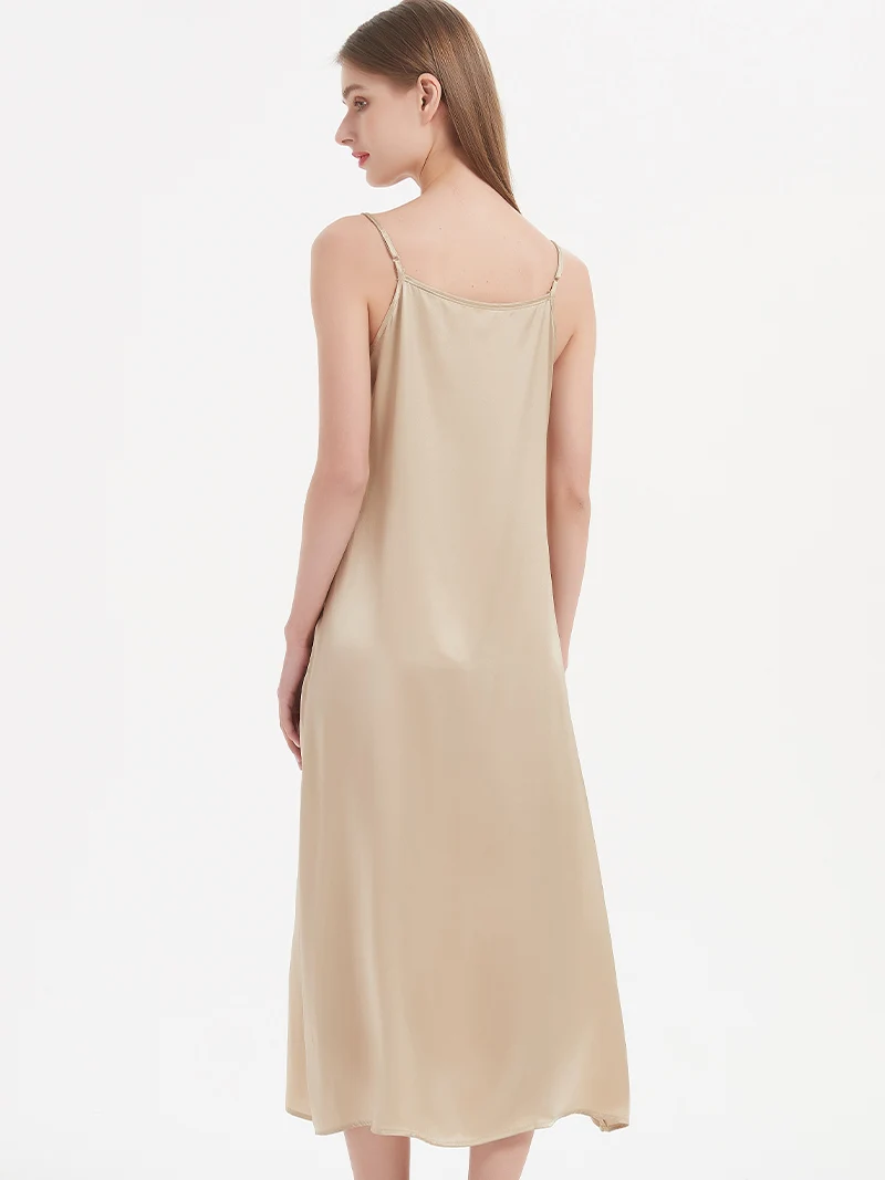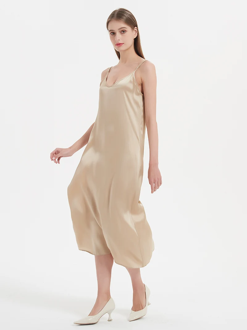 SuyaDream, Woman Long Dress, 100%Real Silk Sleeveless Solid Spaghetti Strap...