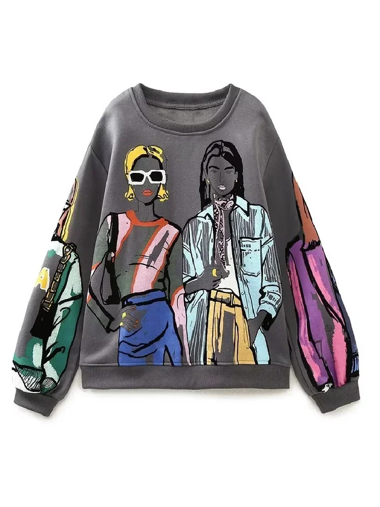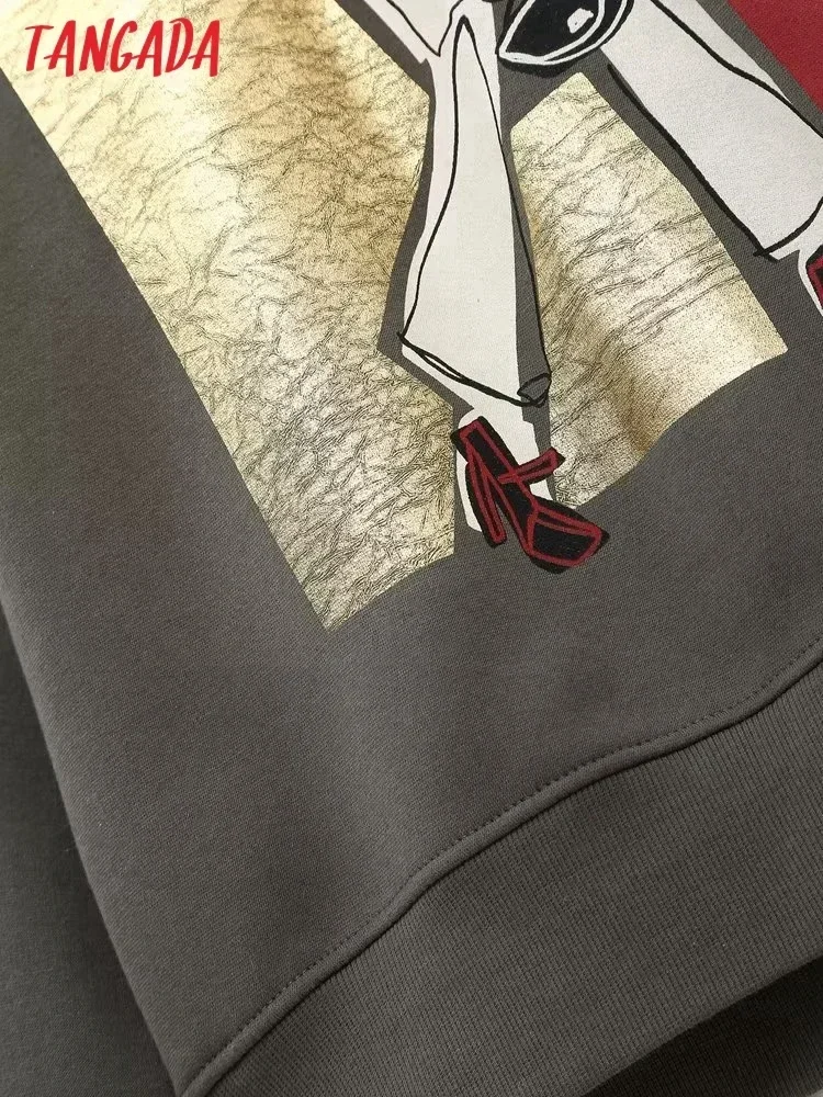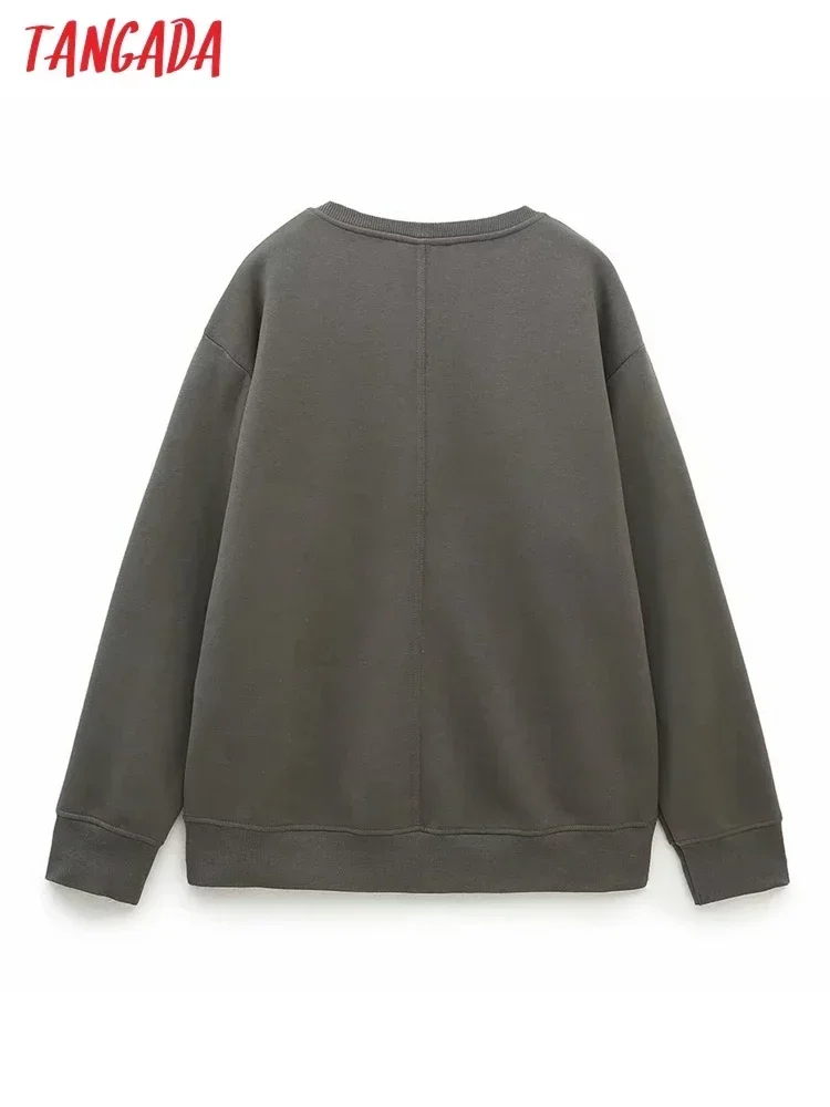 Tangada Women Bronze Fleece Sweatshirts Oversize Long Sleeve O Neck Loose...