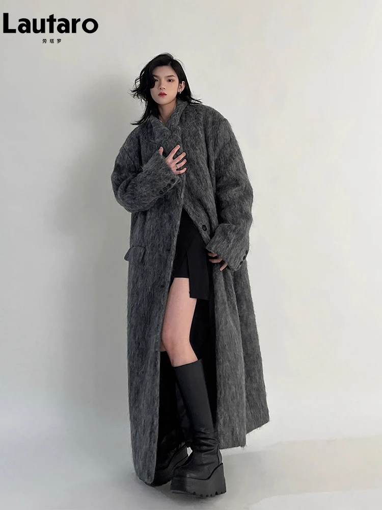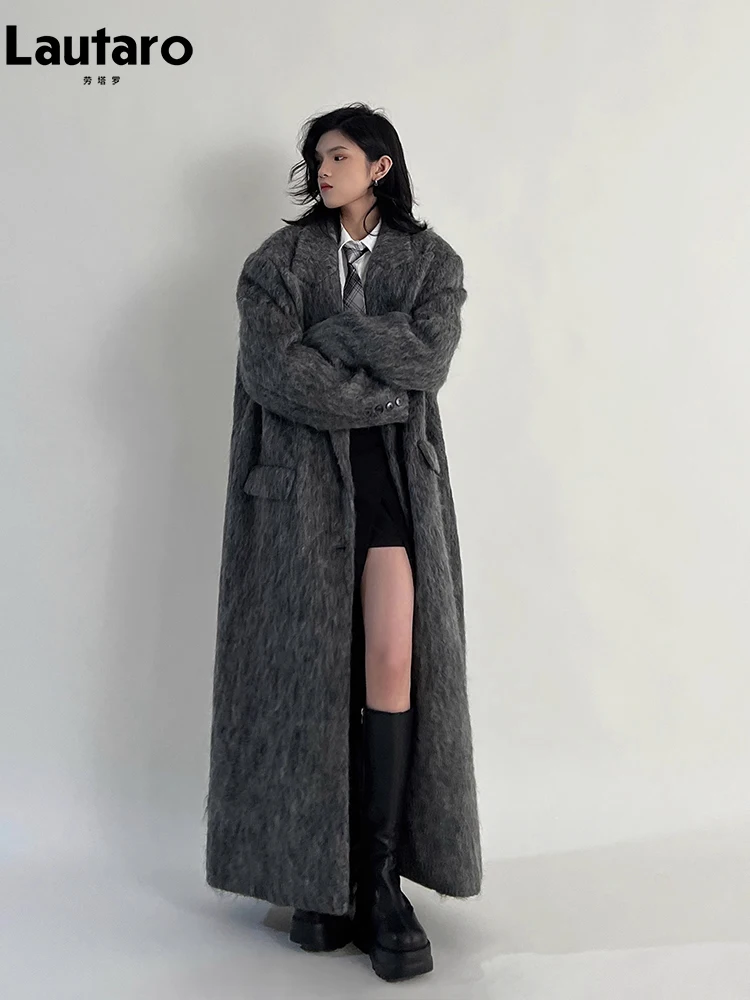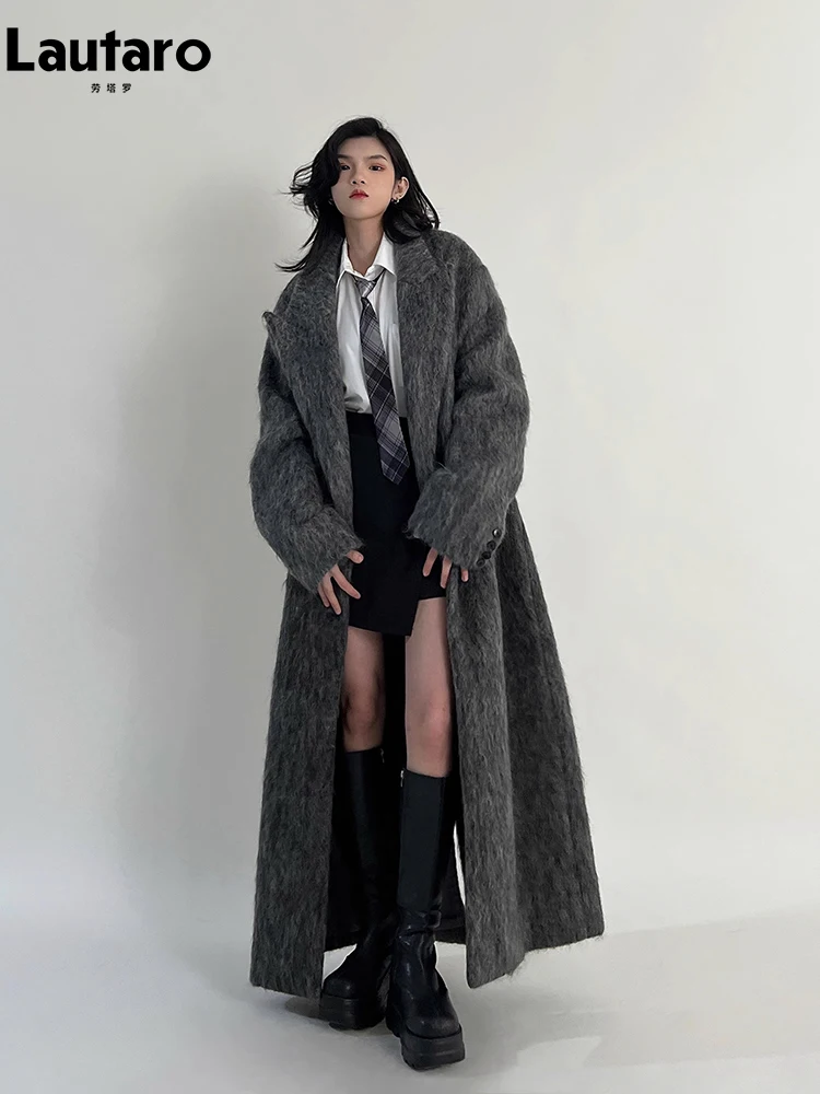 Lautaro Autumn Winter Clothes Women Oversized Extra Long Casual Warm Grey Wool...