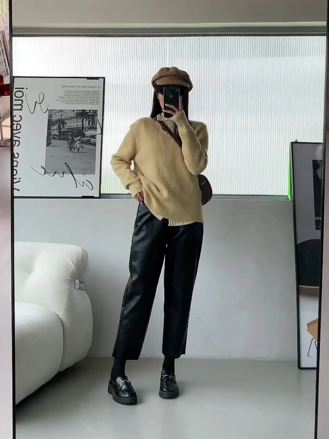 QOERLIN Fall Winter PU Leather Pants Women Elegant High Waist Pockets Faux...