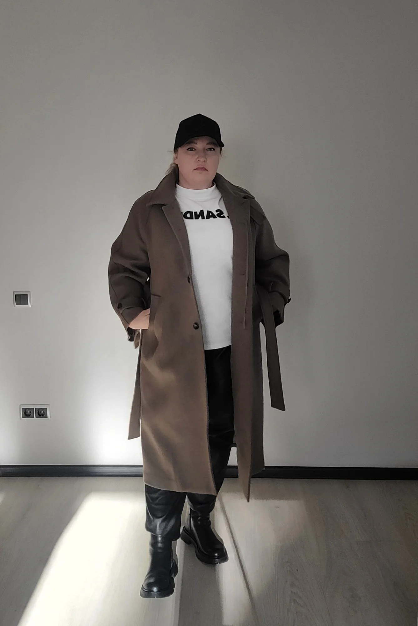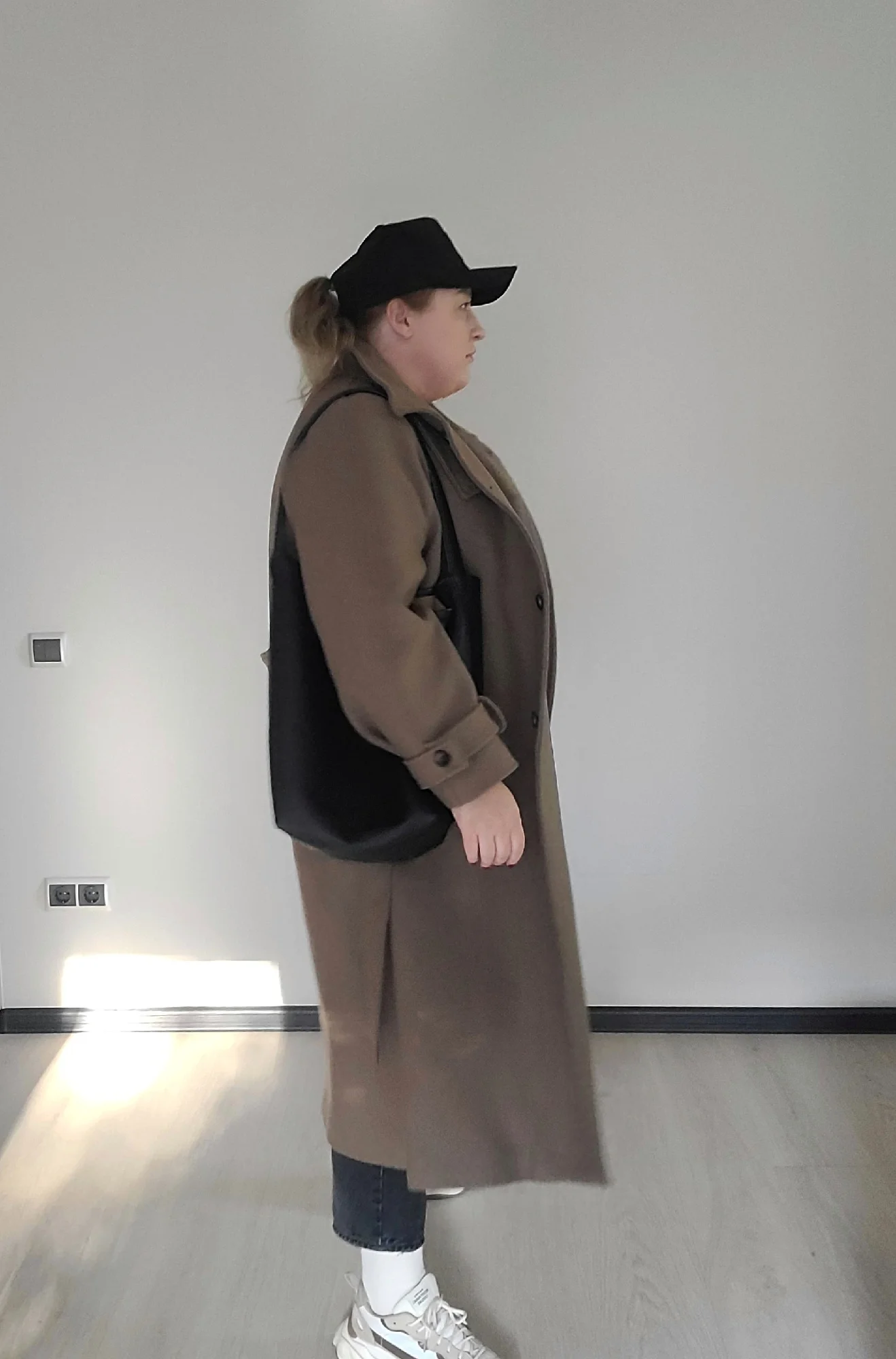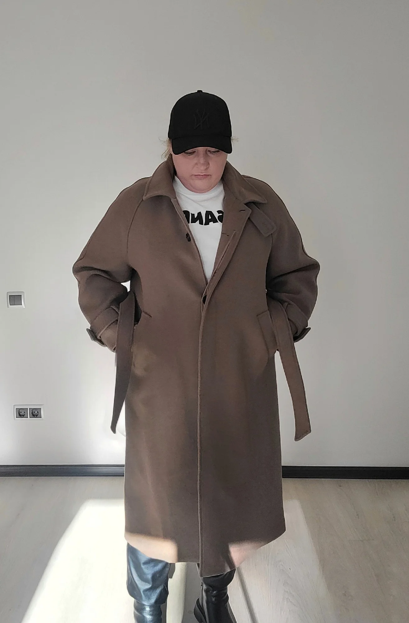 Пальто отличного качества 🔥 50% шерсть/50% полиэстер, немного колкое. Тяжёлое, тёплое, актуальный фасон. ОГ 135 см, длина реально 117 см (!), а по таблице - 120 см ☝️ Я 116/98/120, рост 170 см, мне по фигуре.
