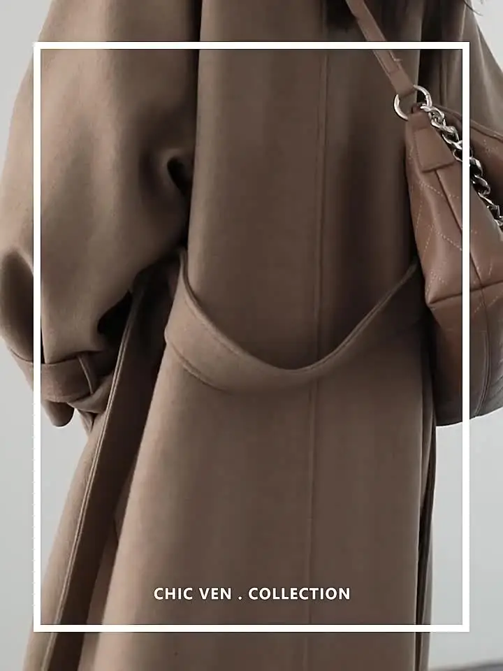 CHIC VEN Women's Long Trencn Coat Standing Belt Lace Up Woolen Coat Raglan...