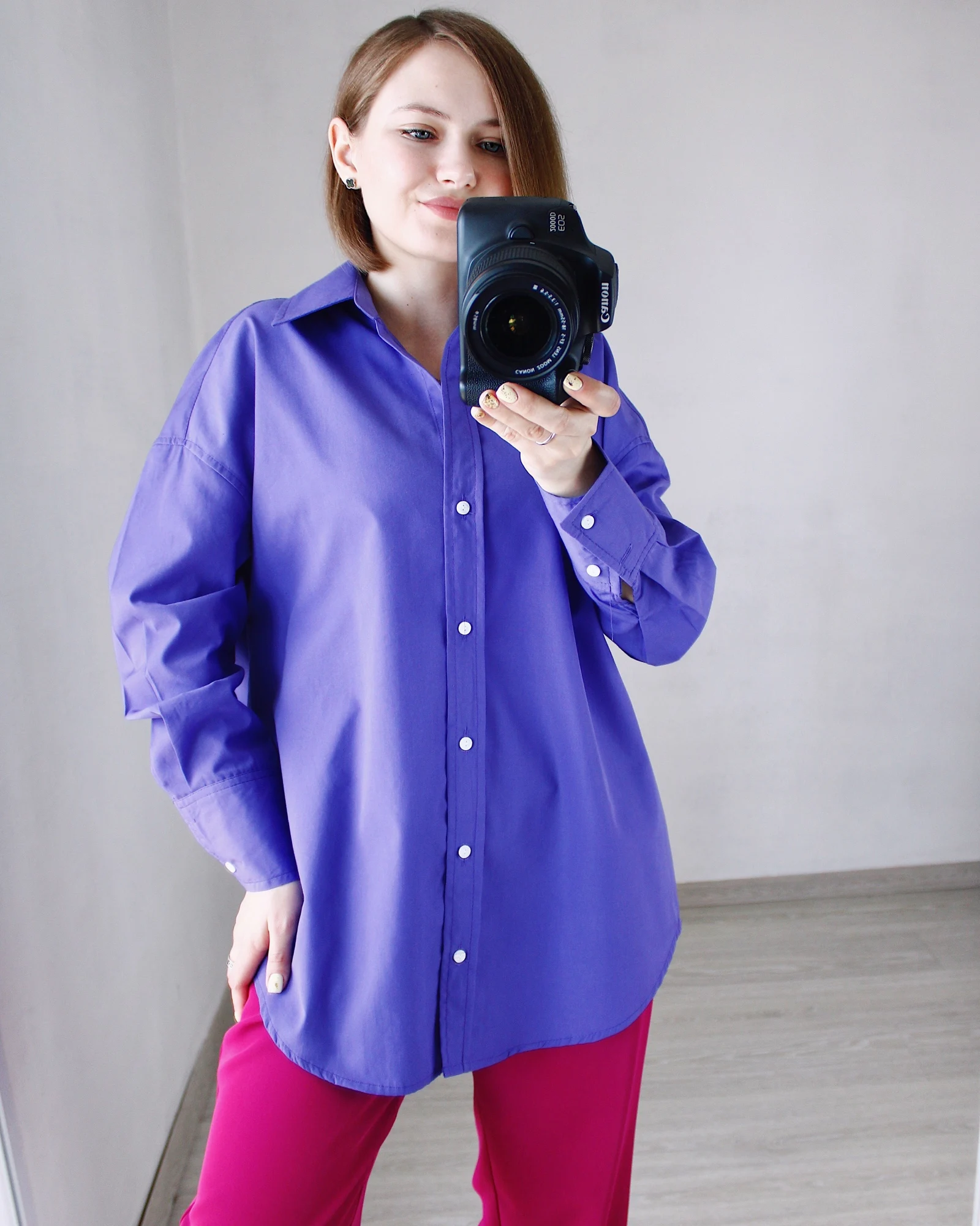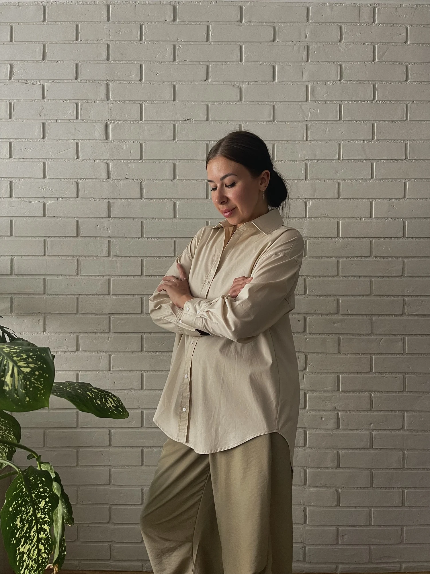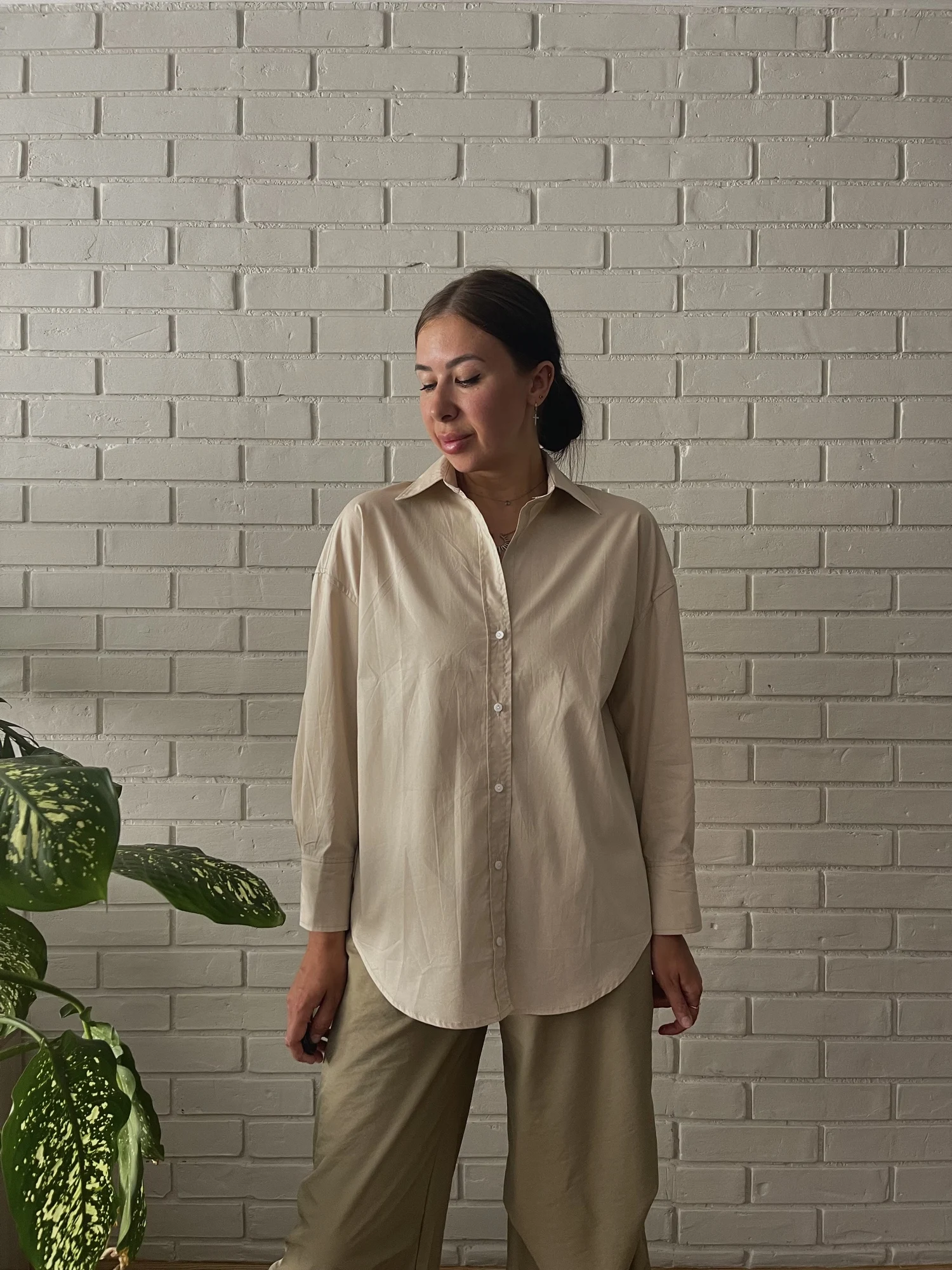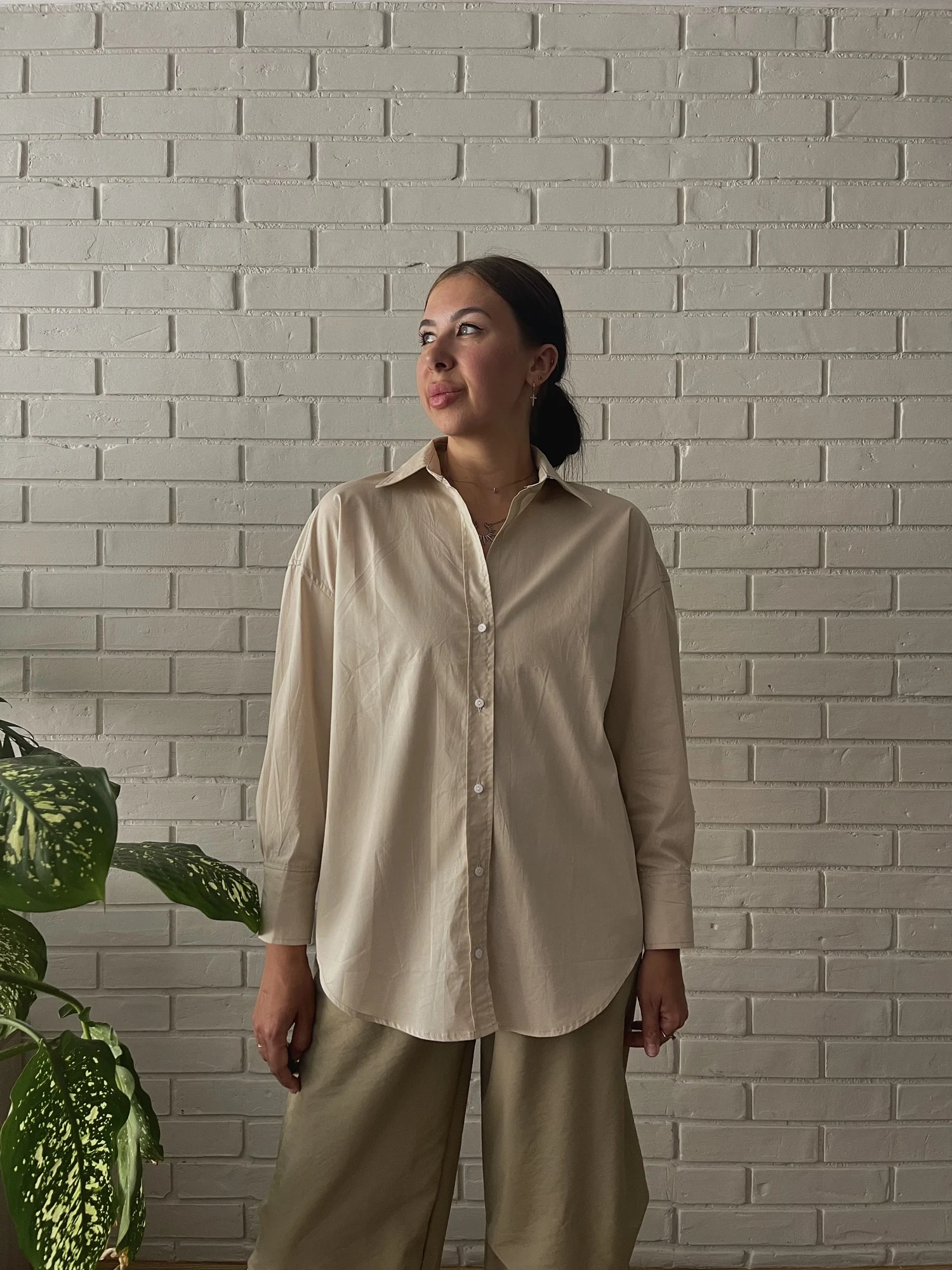 Рубашка выполнена из хлопковой ткани К телу приятная, не эластичная, не просвечивает. Отличный вариант на круглый год Смотрится стильно, оттенок beige в котором я выбрала приятный. Пошита качественно Швы обработанные, ровные. Пуговицы пришиты крепко. Фасон прямой по спинке удлиненная по бокам закругленная. Линия пуговиц от груди (не от шеи). Манжеты на пуговицах. Воротник классический отложной. Линия плеча спущена. На мне размер L, села оверсайз. Мне нравится. Мои параметры 90/70/94 рост 170. БИРКА и ярлык присутствует Доставка девять дней СДЕКом Рекомендую ❤️