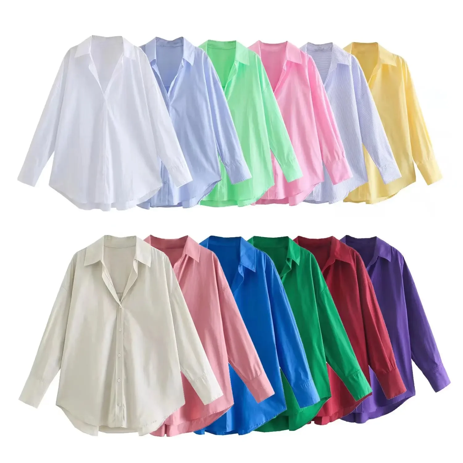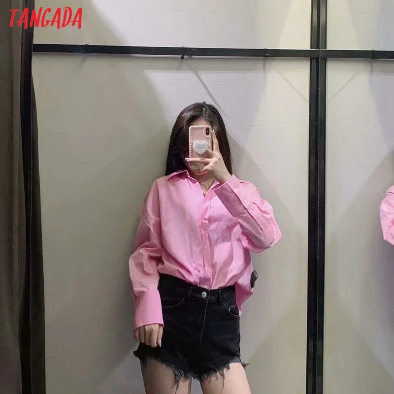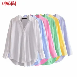 Tangada Women Basic Candy Color Shirts Long Sleeve Solid Turn Down Collar...
