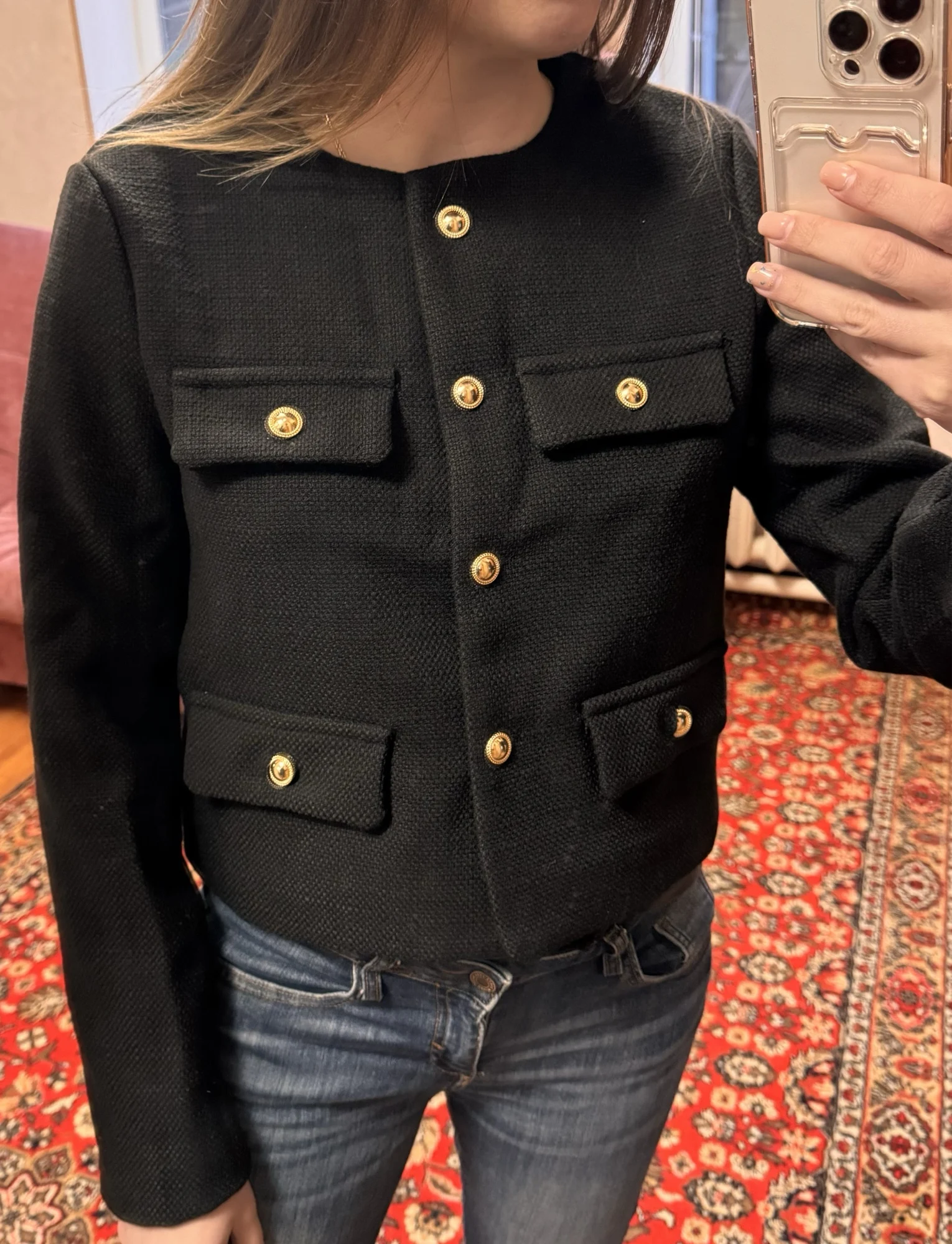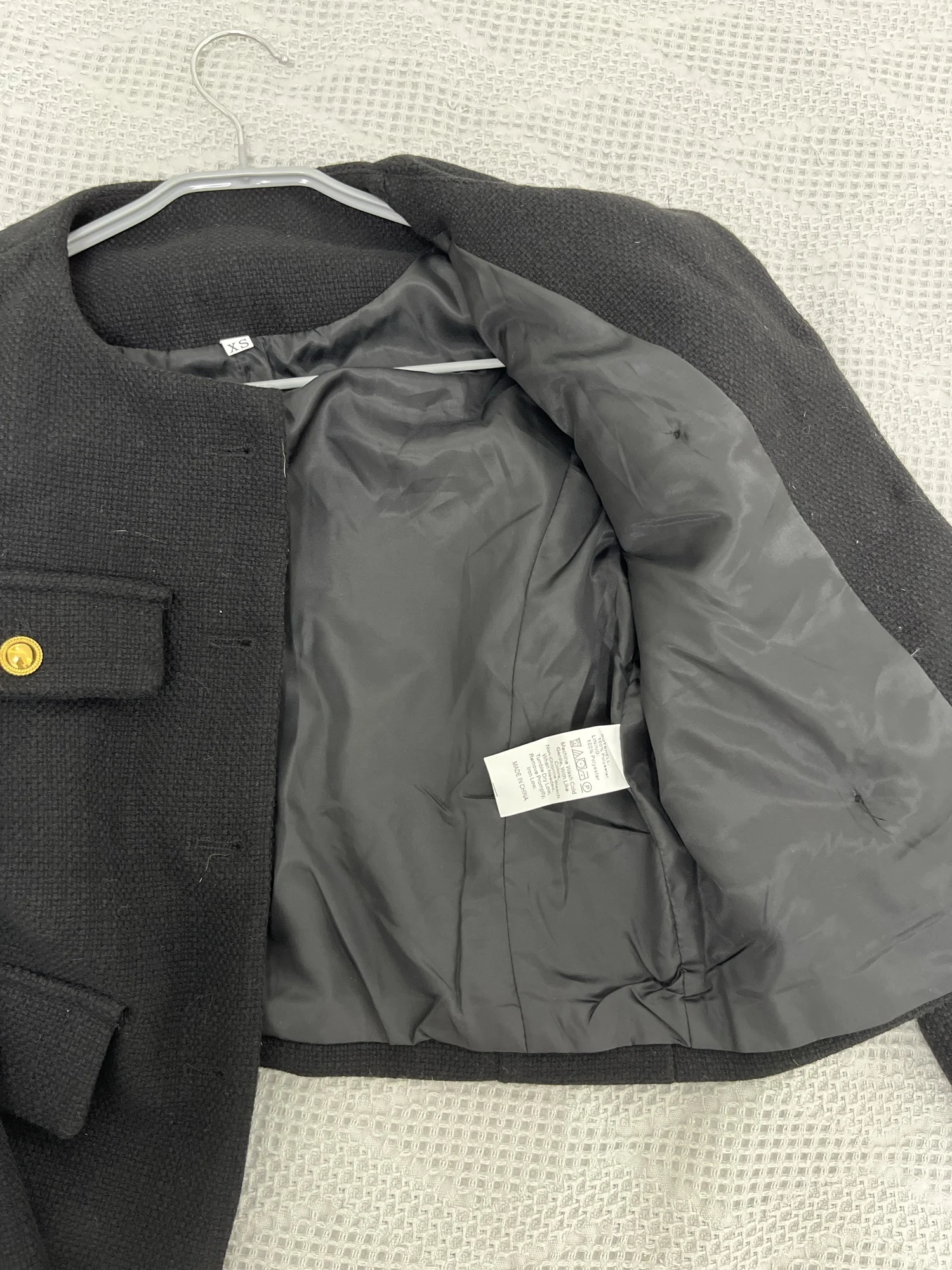 Очень хороший пиджак, размер в размер. Очень долго искала и наконец нашла, у других продавцов дороже в разы, тут цена подарок! Сшит аккуратно, нитки не торчат , ткань приятная, не колится,запаха постороннего нет! Укороченный!Пришел очень быстро , воощем советую к покупке однозначно!!