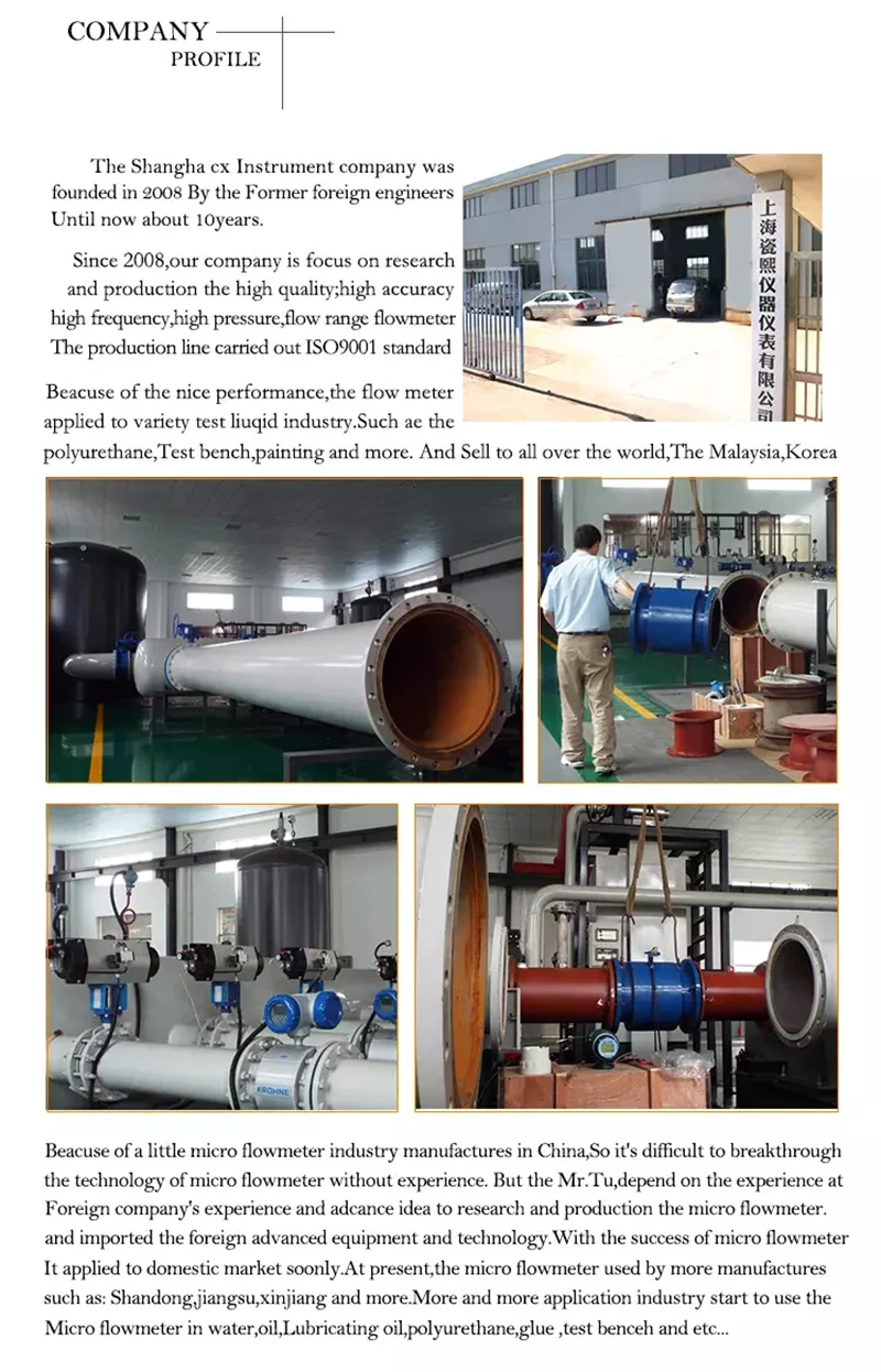 Наш главный инженер бывший инженер Сименса, все машины КНК используют систему Сименса, до сих пор представление измерителя прокачки шестерни ДЖСН микро-овального достигало или над самым высоким стандартом через усилие лет. Например, минимальный расход микрорасходомера составляет 0,1 мл/мин, соотношение импульсов может составлять 1 мл/импульс. Максимальное давление до 1000 бар и т. Д.