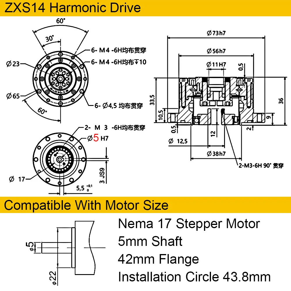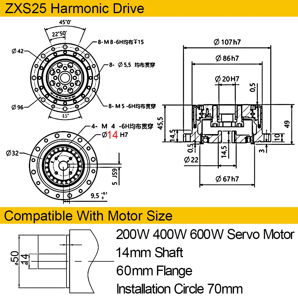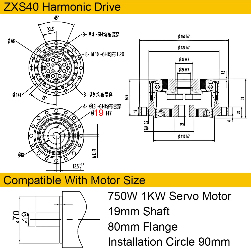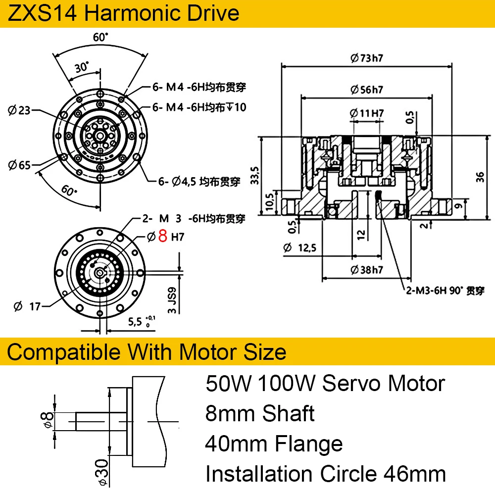 Harmonic Drive With Flange Plate Cup Type Harmonic Reducer Humanoid Robot Arm...