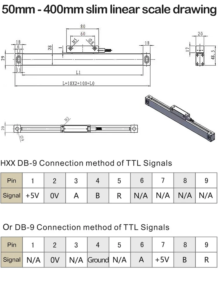 HXX высокоточные тонкие линейные весы 1 мкм 5 В TTL 50 100 150 200 300 350 400 мм 20x29 мм DRO маленький энкодер терка линейка датчик