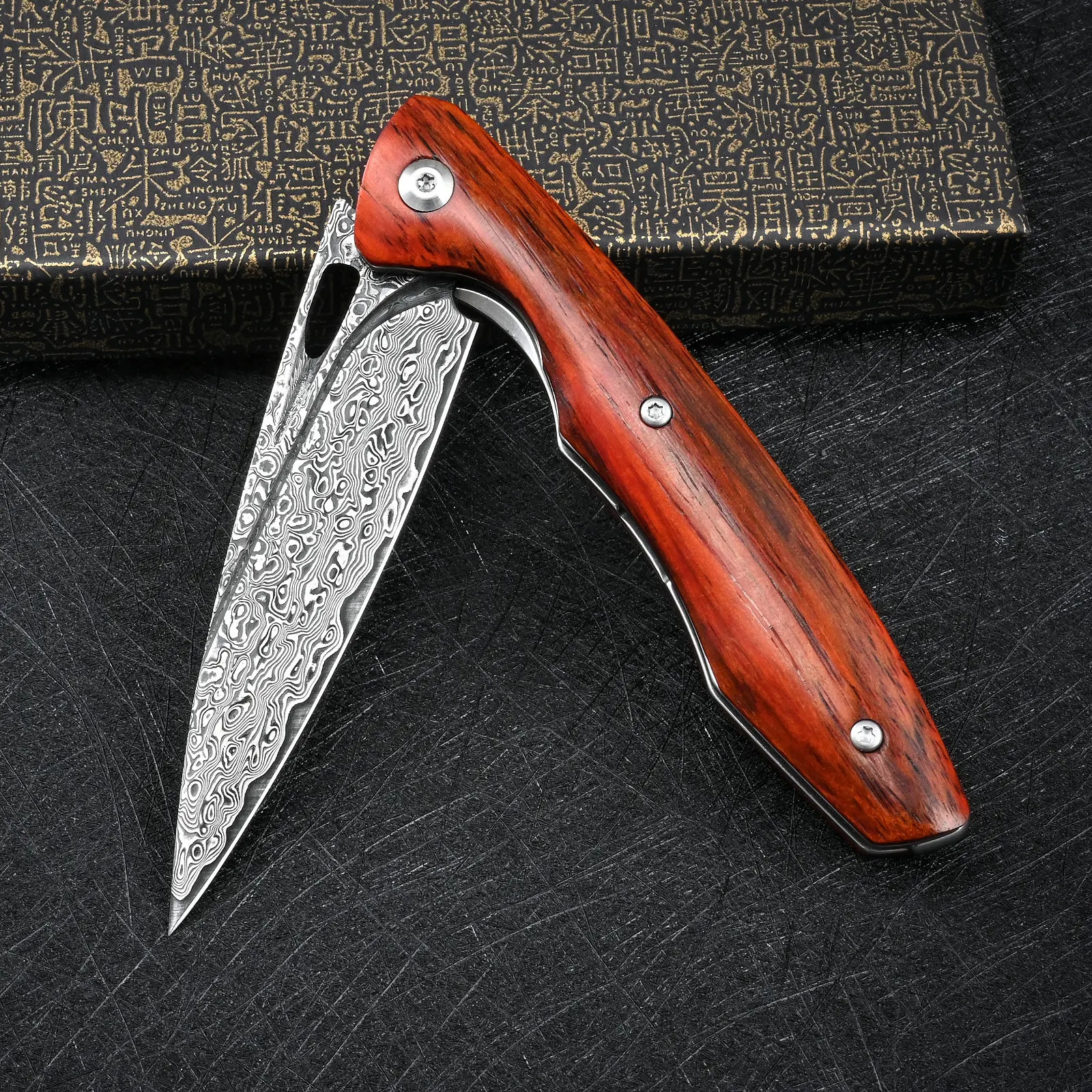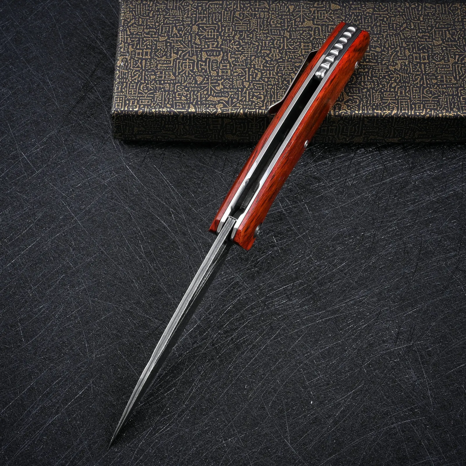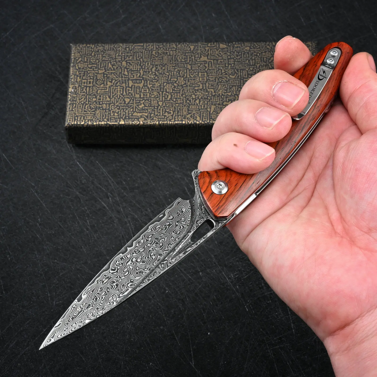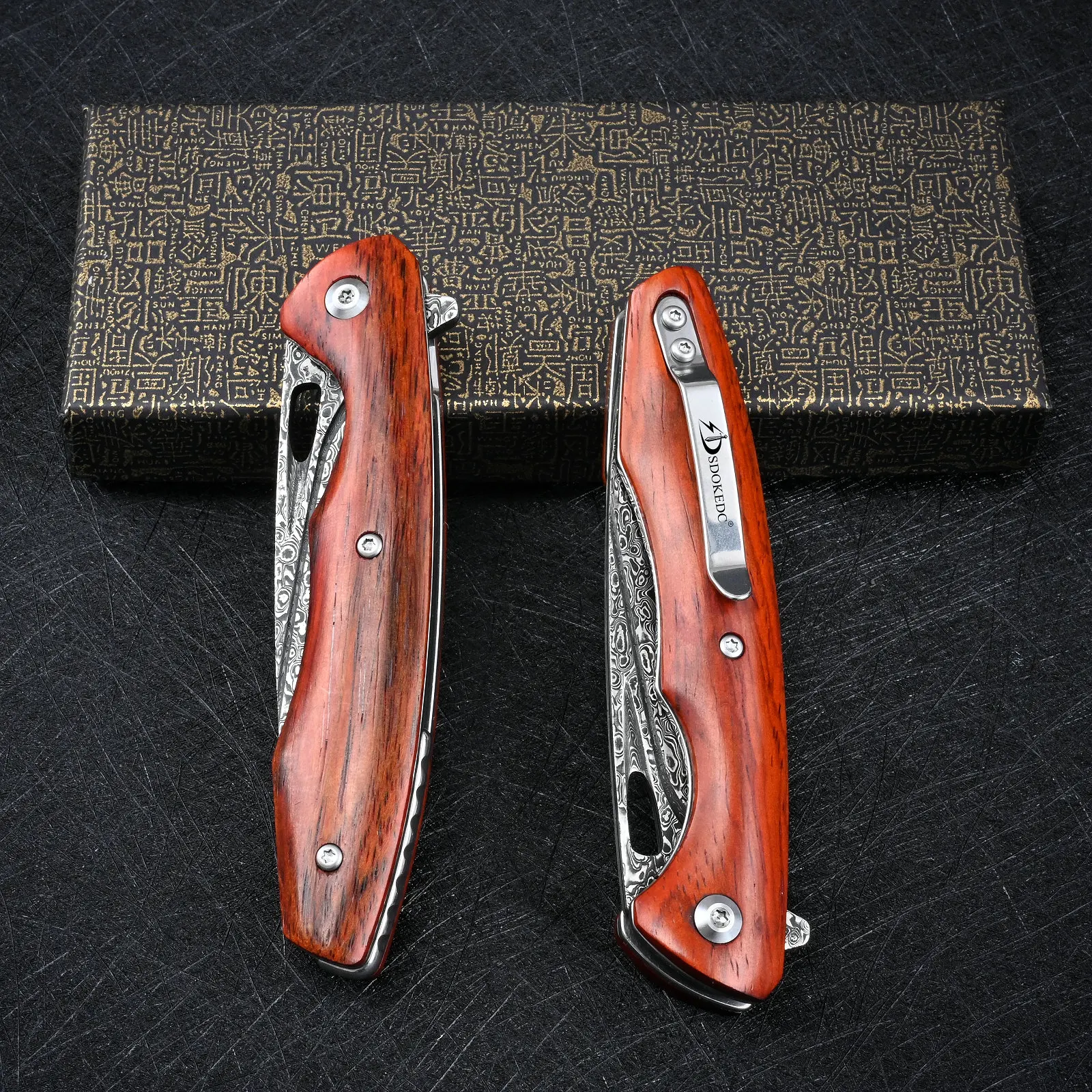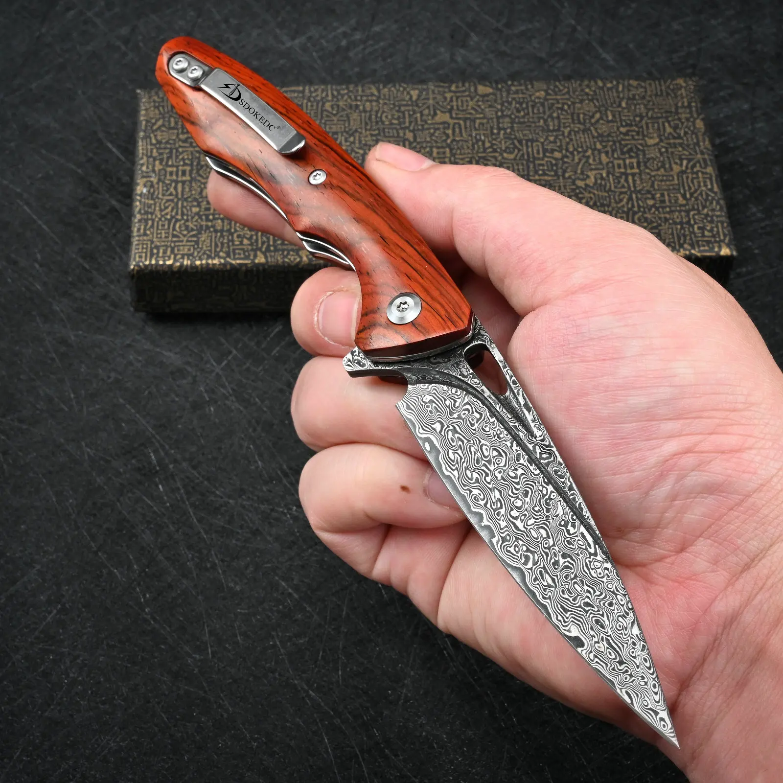 SDOKEDC Damascus Steel Ball Bearing Pocket Folding Knives with Clip Tactical Knife For Men EDC Outdoor Camping Self Defense