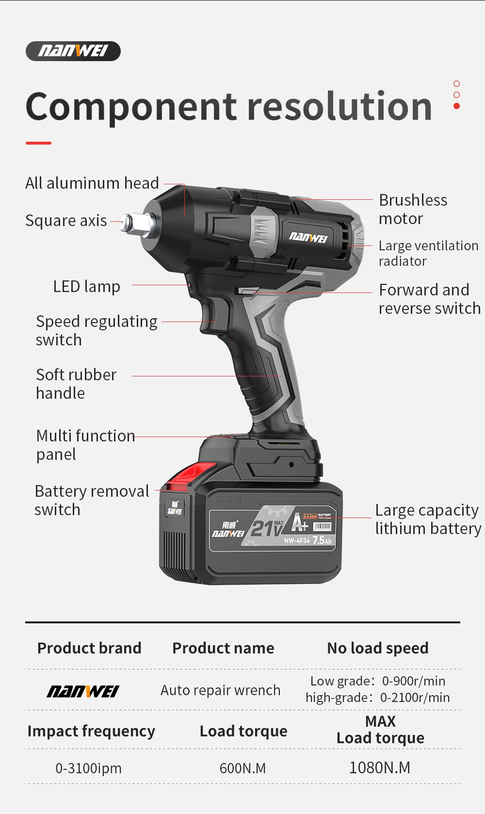 NANWEI 600N беспроводной аккумуляторный гайковерт