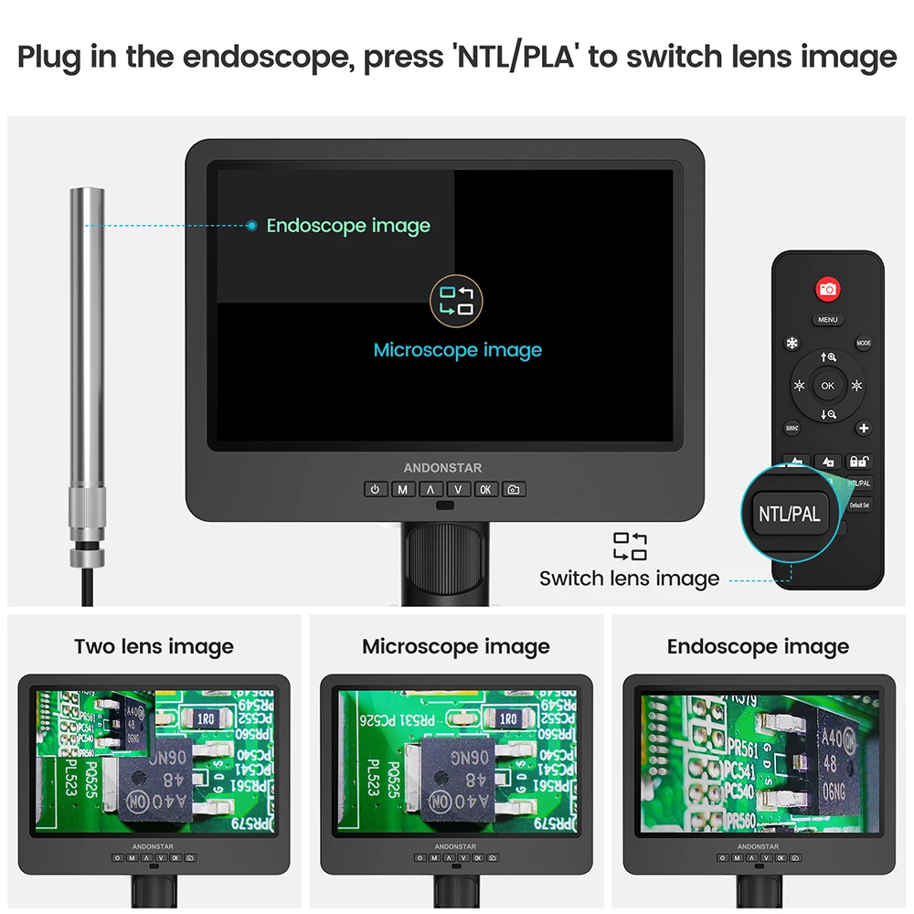 Andonstar 3 Lens AD249SM-ES HDMI Digital Microscope 2000X with Endoscope 10.1"...