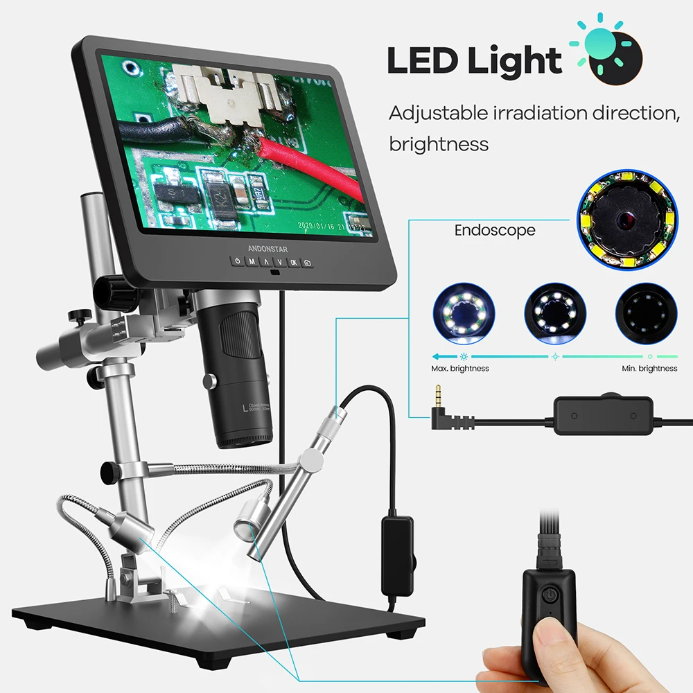 Эндоскоп Andonstar AD249SM-ES 10,1 "IPS ЖК-дисплей 2160P UHD HDMI цифровой микроскоп 2000X для телефона электроника инструменты для пайки печатных плат