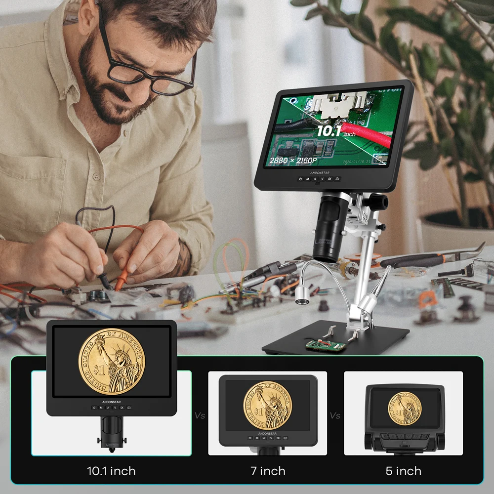 Andonstar AD249SM 10,1-дюймовый 2000X UHD 2160P HDMI цифровой микроскоп с 3 объективами для подключения к ПК для печатной платы проверка пайки для ремонта SMD