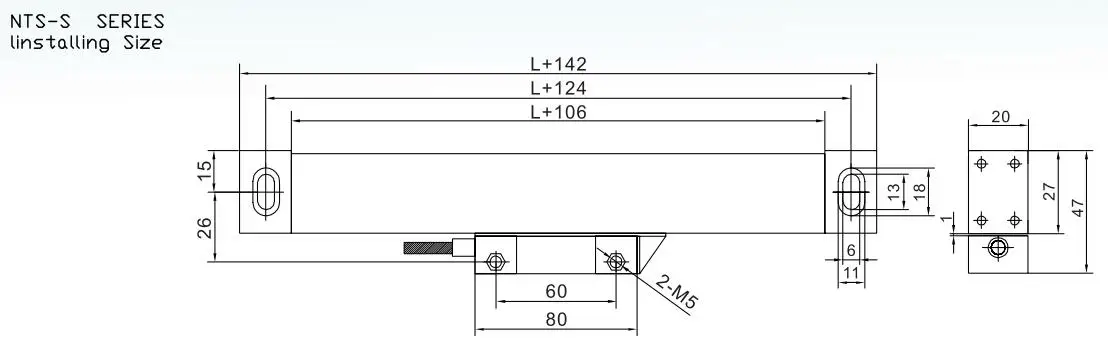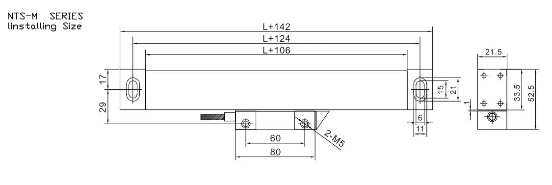 2. Общая (общая) Длина: длина хода + 142 мм (0-1142 мм)