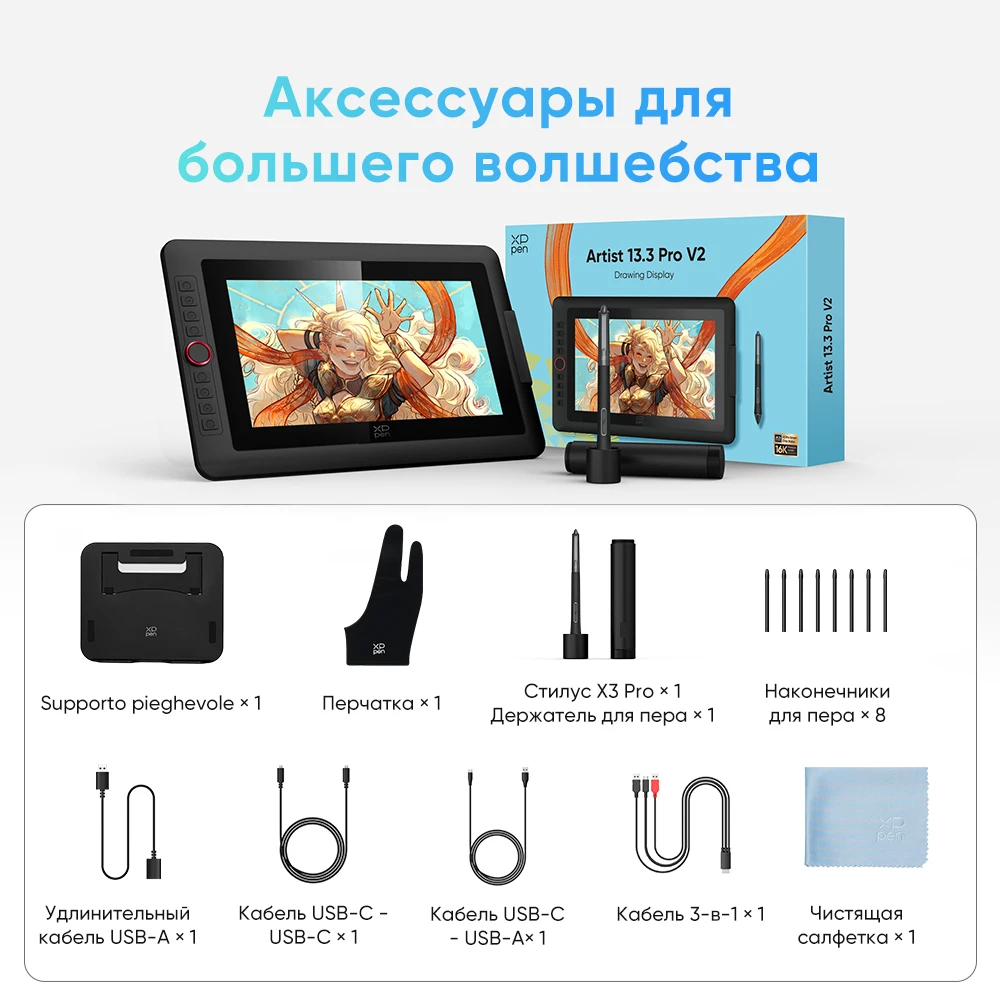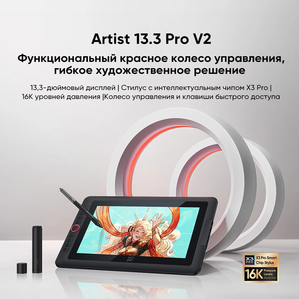 * Artist 13.3 Pro V2 совместим с серией стилусов с интеллктуальным чипом X3 Pro.