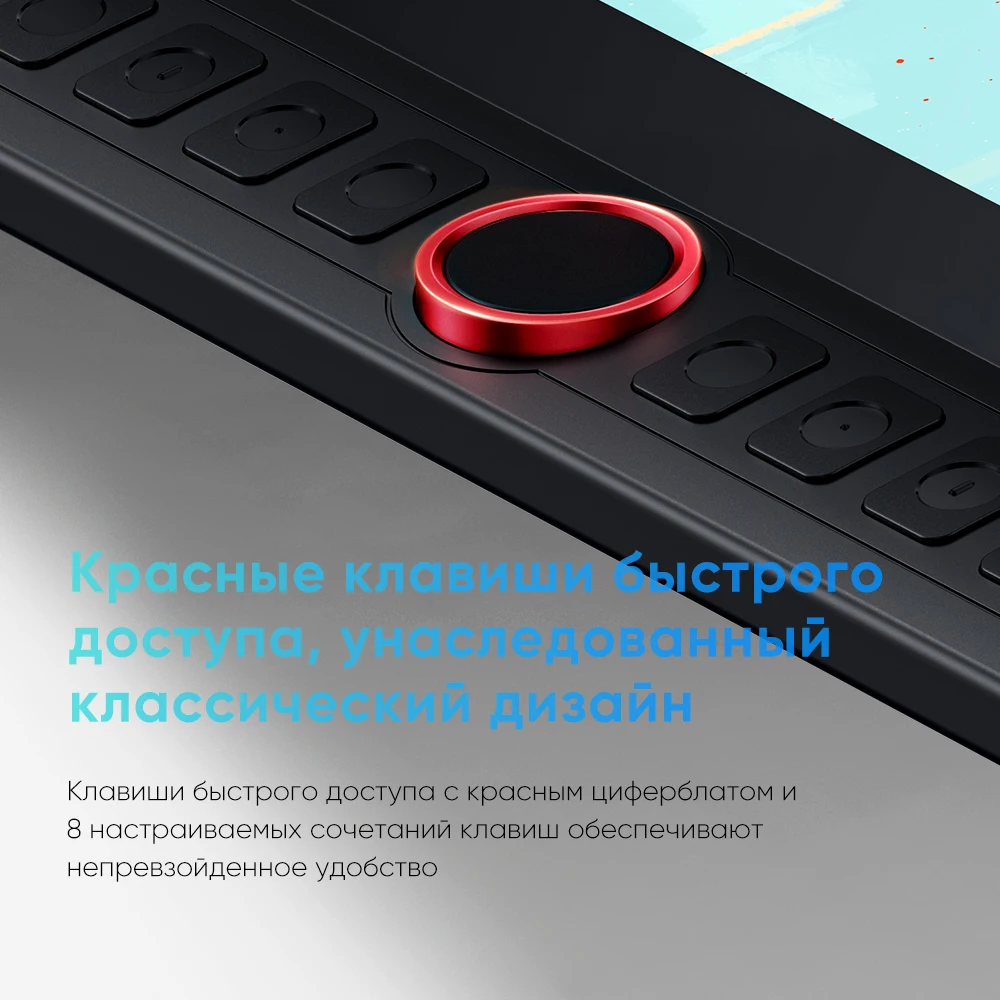Этот графический дисплей оснащен гладкими клавишами быстрого доступа с красным циферблатом и 8 настраиваемыми клавишами быстрого доступа, что обеспечивает непревзойденное удобство, обеспечивая быстрое и легкое рисование как на столе, так и в других местах.