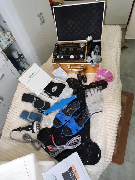 Прекрасный аппарат пришел за неделю с Китая до Новороссийска курьером. Я была на массаже на таком аппарате у своей подруги, потом была на хофоу массажере, разницы не почувствовала. Цена адекватная, продавец во всем помогает, я сначала выбрала другую модель, сейчас рада, что есть эта https://aliexpress.ru/item/1005004557702161.html?pdp_npi=4%40dis%21USD%21US%20%24446.11%21US%20%24370.27%21%21%213235.05%212685.09%21%40213d7a8f17193828381046978ebd95%2112000038218719894%21sh%21US%21251347937%21&spm=a2g0o.store_pc_allItems_or_groupList.new_all_items_2007614796650.1005004557702161&gatewayAdapt=glo2rus4itemAdapt&sku_id=12000038218719896 , он чёрныйчёрный, насадки те же, только подогрев контролируется. Мне нравится подогрев разных насадок, особенно здорово маскировать бедра Ввакумом. Пробовала массаж перчатками, сама себе, шикарно. Пробовала делать массаж другим, там можно делать массаж и без перчаток, надо разобраться с подключением. Массаж на лицо, глаза, стопы, спину, все легко переключается. Можно регулировать силу тока, есть 3 вариации тока, подогрев, минуты. Массаж делала уже 5 раз. Мне нравится, я рекомендую, хватит на долгие года. Тут и массажист и косметолог и против целлюлита и для зрения и органов, круто на мой взгляд
