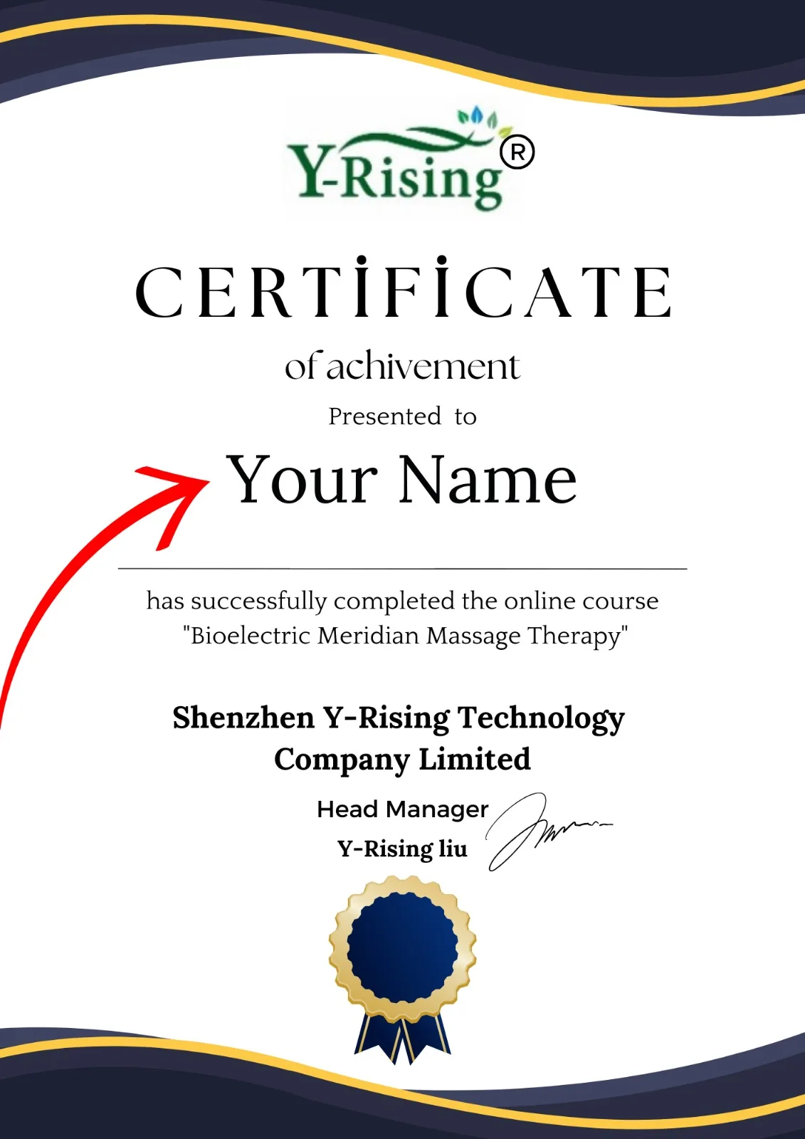 Мы рады сообщить, что все клиенты, приобретающие машину для массажа Meridian, получат бесплатное онлайн-обучение и персонализированный сертификат завершения, как показано на рисунке.