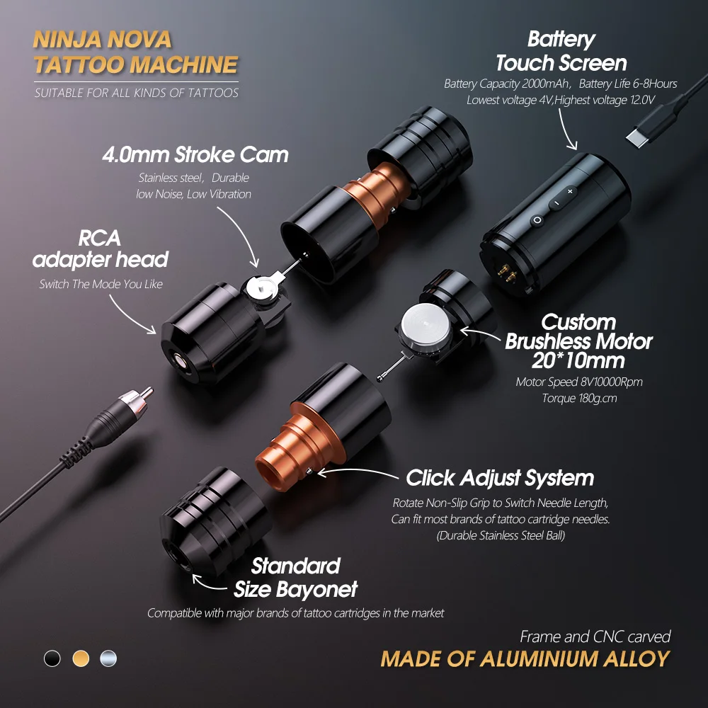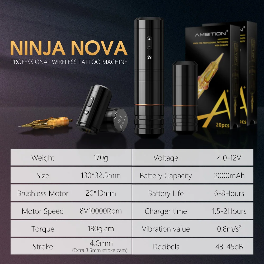 Ambition Ninja Nova Kit 2024 Latest 4.0/3.5mm Stroke Wireless Tattoo Pen...