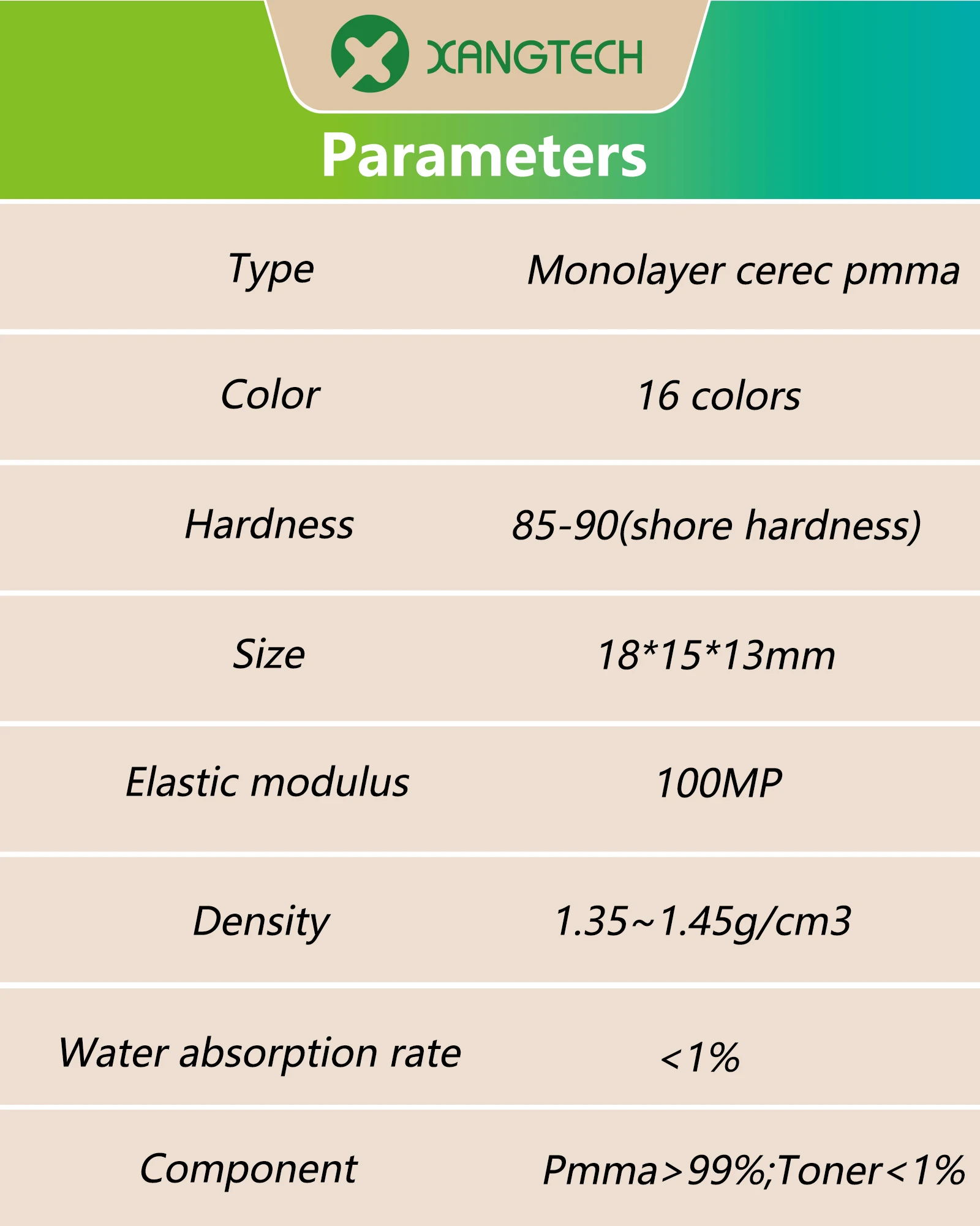 Блоки XANGTECH Monolayer Cerec Pmma (18-15-13 мм) (5 шт.) для стоматологической лаборатории CAD CAM