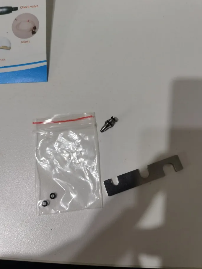 Он с водой!!!!! И это круто. В комплекте запасное сопло, ключик для откручивания, дополнительная баночка с крышкой. Качество отличное. Я разобрал всё, что смог разобрать, посмотрел внутри: металл хороший, толстый, без заусенцев и каких-то царапин внутри. Все детали друг к другу присоединяются идеально, плотно, есть резиновые уплотнители (и запасные в комплекте, правда не все размеры). И всё-таки внутри между деталями остаётся песок (я сыпал только Каво 27мкм). Хотя бы раз в неделю надо разбирать и продувать пустером. Мой вывод: за эти деньги топовый аппарат, который достаточно полноценно заменяет дорогущий рондофлекс.