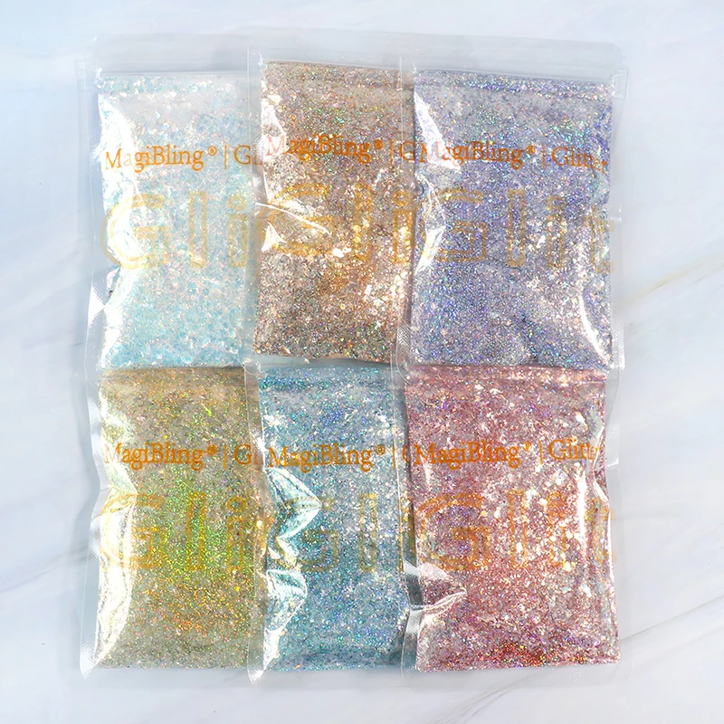 MagiBling 50 г блестящая русалка AB блестки для дизайна ногтей смешанные блестки лазерный серебряный ломтик мелкая пыль порошок гель-лак украшения «сделай сам»