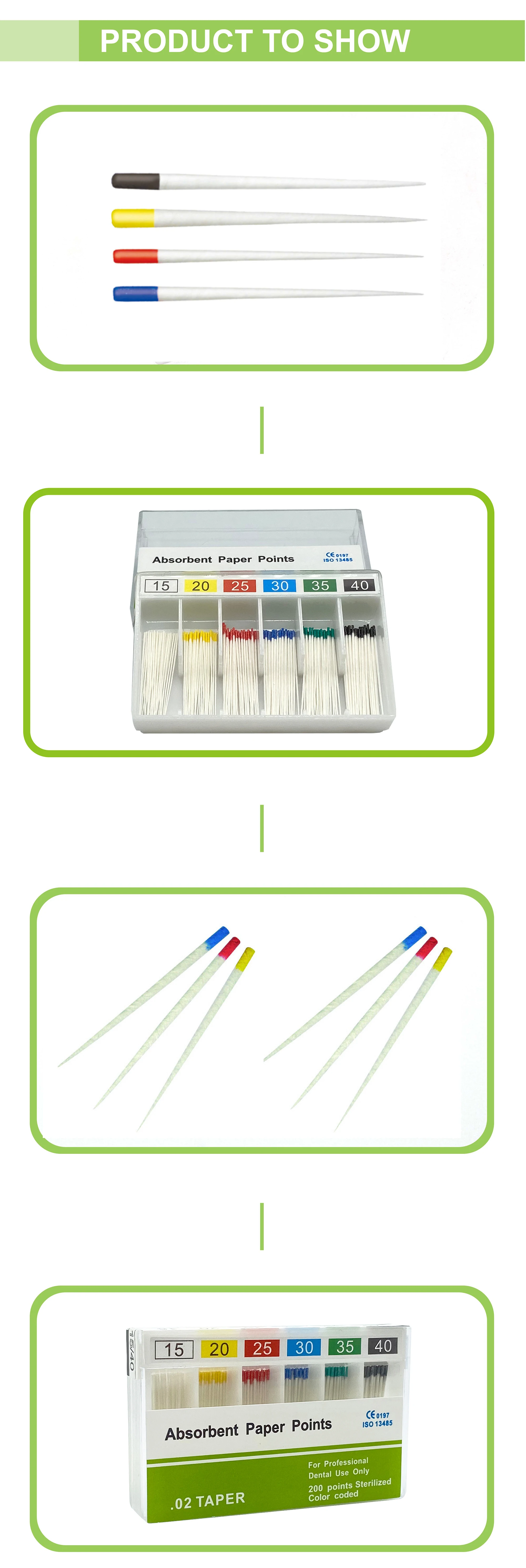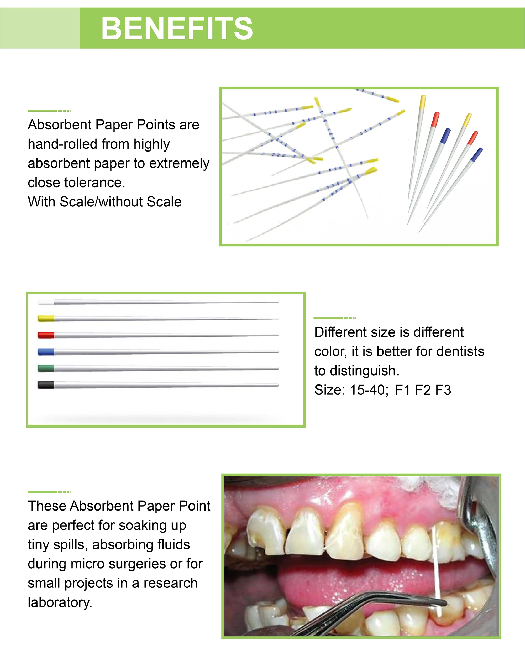 Paper point with scale is convenient for detecting depth of root canal and can be used to check the cleanliness of root canal.