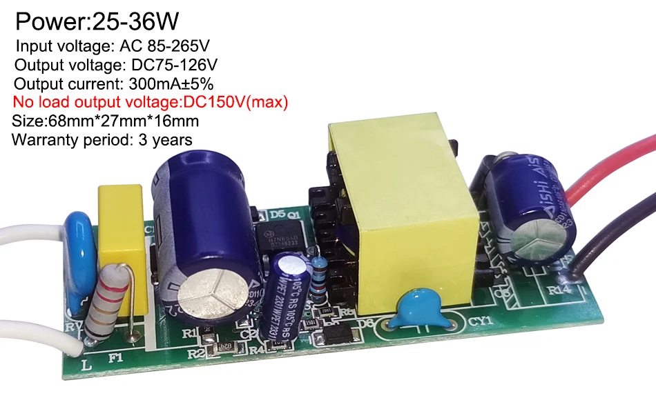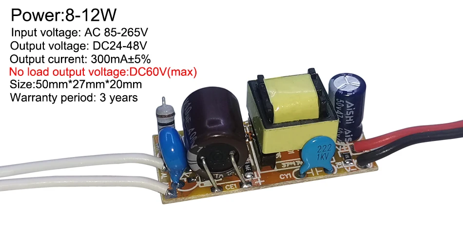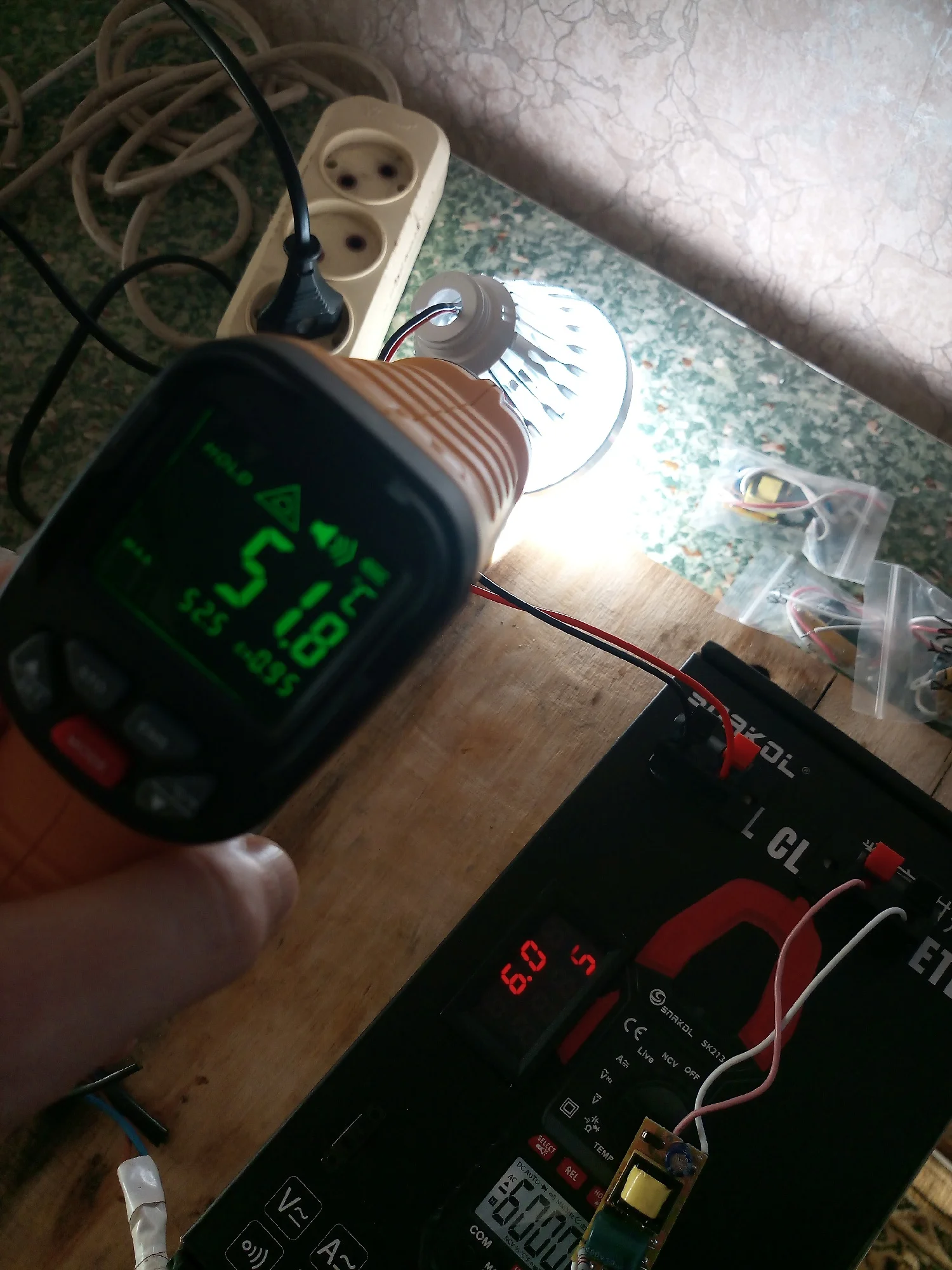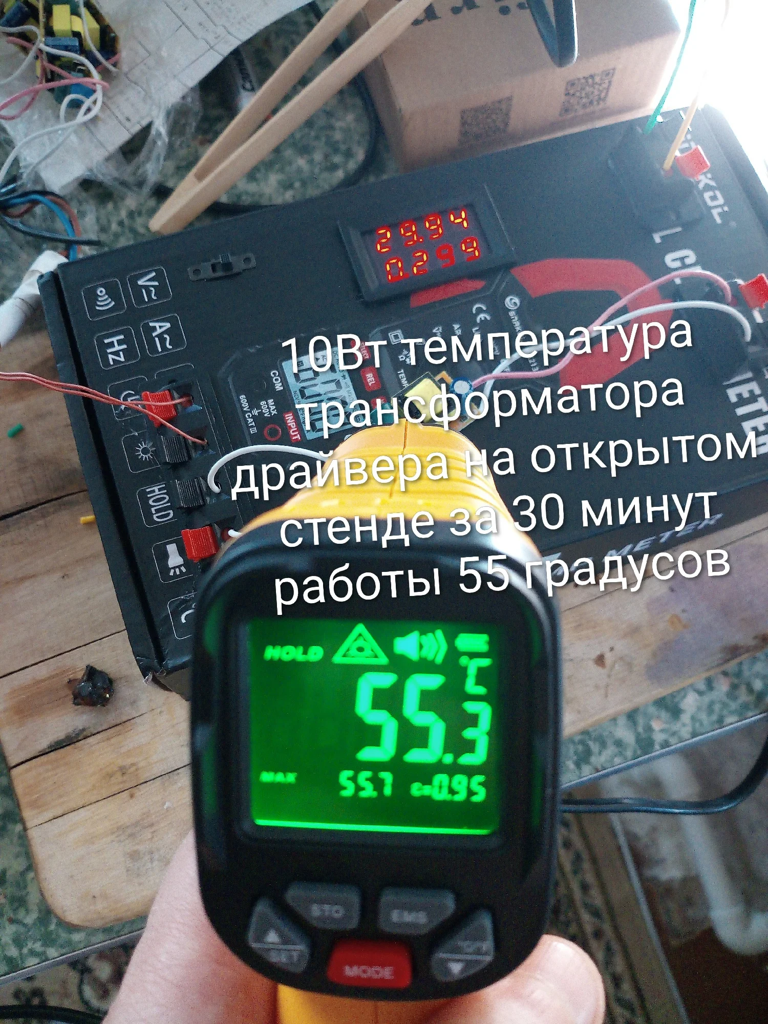 Какая цена такое и качество, нагружал матрицей 12 Вт и 10 Вт нагрев на открытом стенде в течение получаса трансформатора драйвера при 10 ваттах 55 градусов при 12Вт, 60 градусов, хочу собрать алюминиевые долговечные лампы мощностью 12 Вт для этого купил 10 штук драйверов мощностью от 8 до 12 Вт, жалею что поторопился и взял сразу так много, трансформатор на плате очень маленький и не вывозит нагрузку 300 ма, отпаивание одного из двух тока задающих резисторов ни к чему не приводит драйвер отказывается запускаться , как уменьшить рабочий ток я не знаю. Алюминиевый корпус лампы прогревается матрицами мощностью 10-12 Вт до за 30 минут работы на 50°, при рабочем токе 300Ма, если встроить туда этот драйвер температура будет слишком большой и драйвер долго не выдержит.