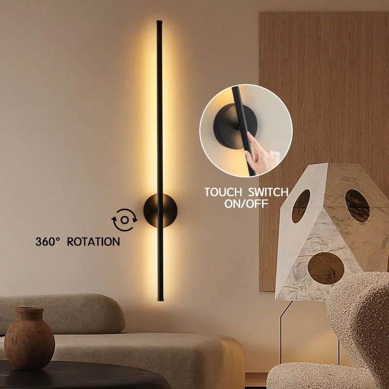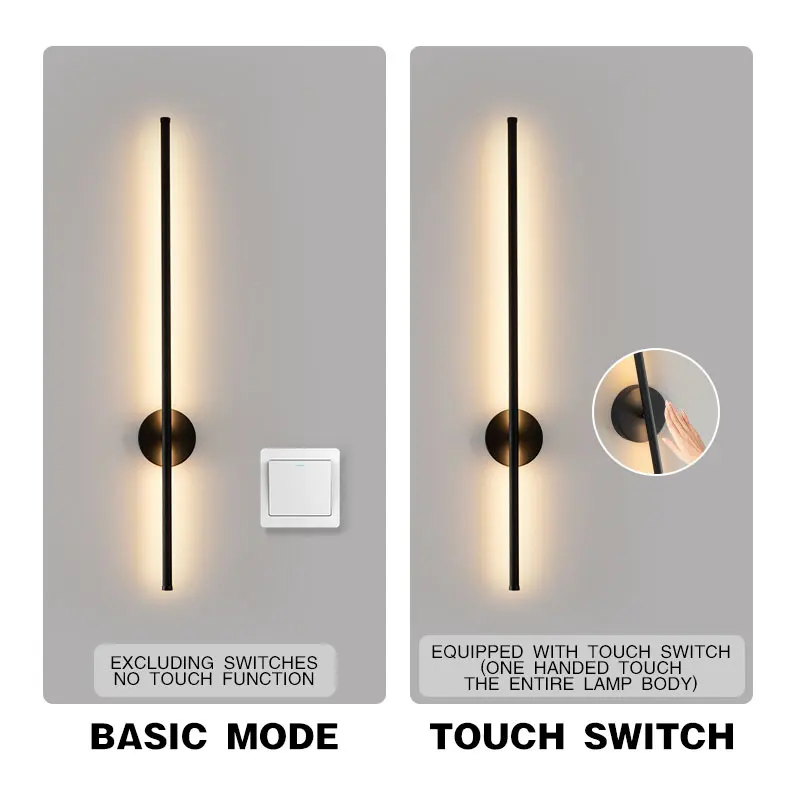 Современный сенсорный переключатель с регулируемой яркостью, светодиодные настенные светильники AC85-265V, длинная полоса, светодиодный настенный светильник, бра, внутреннее настенное освещение для прикроватной тумбочки, спальни, черный