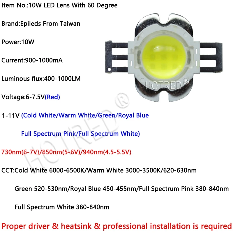 Аквариумный светодиодный чип HotRed 10W 60degree lens