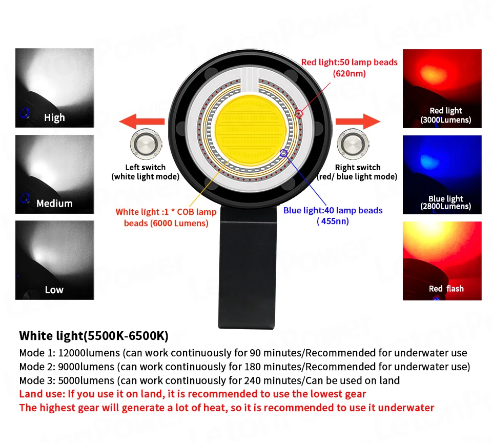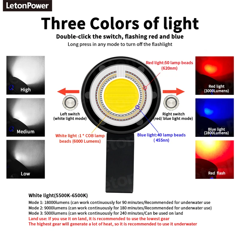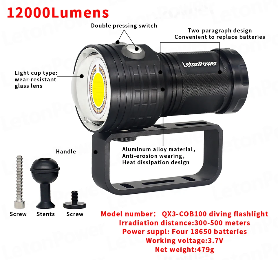 LetonPower подводный фонарь для дайвинга QX3 12000 люмен