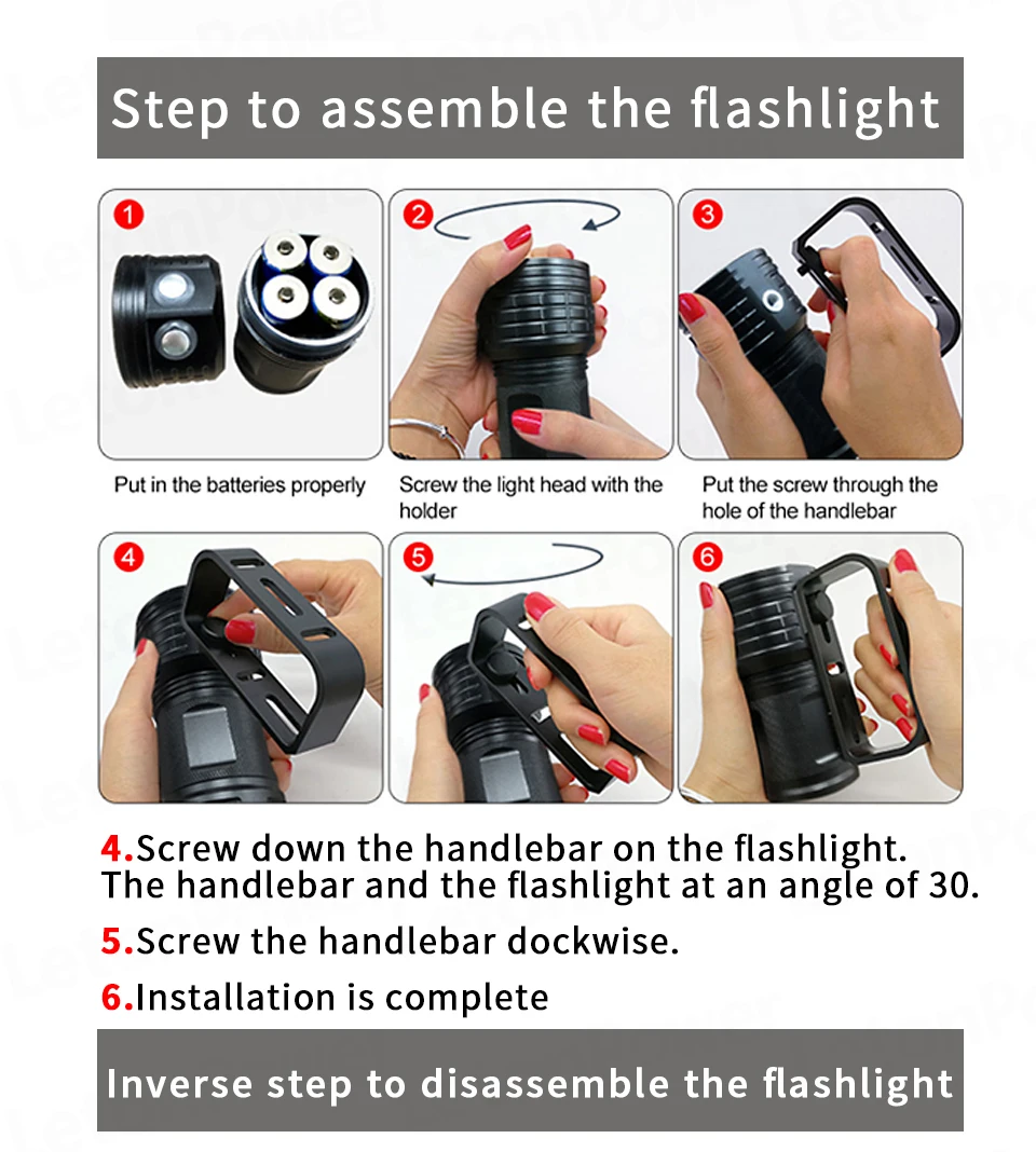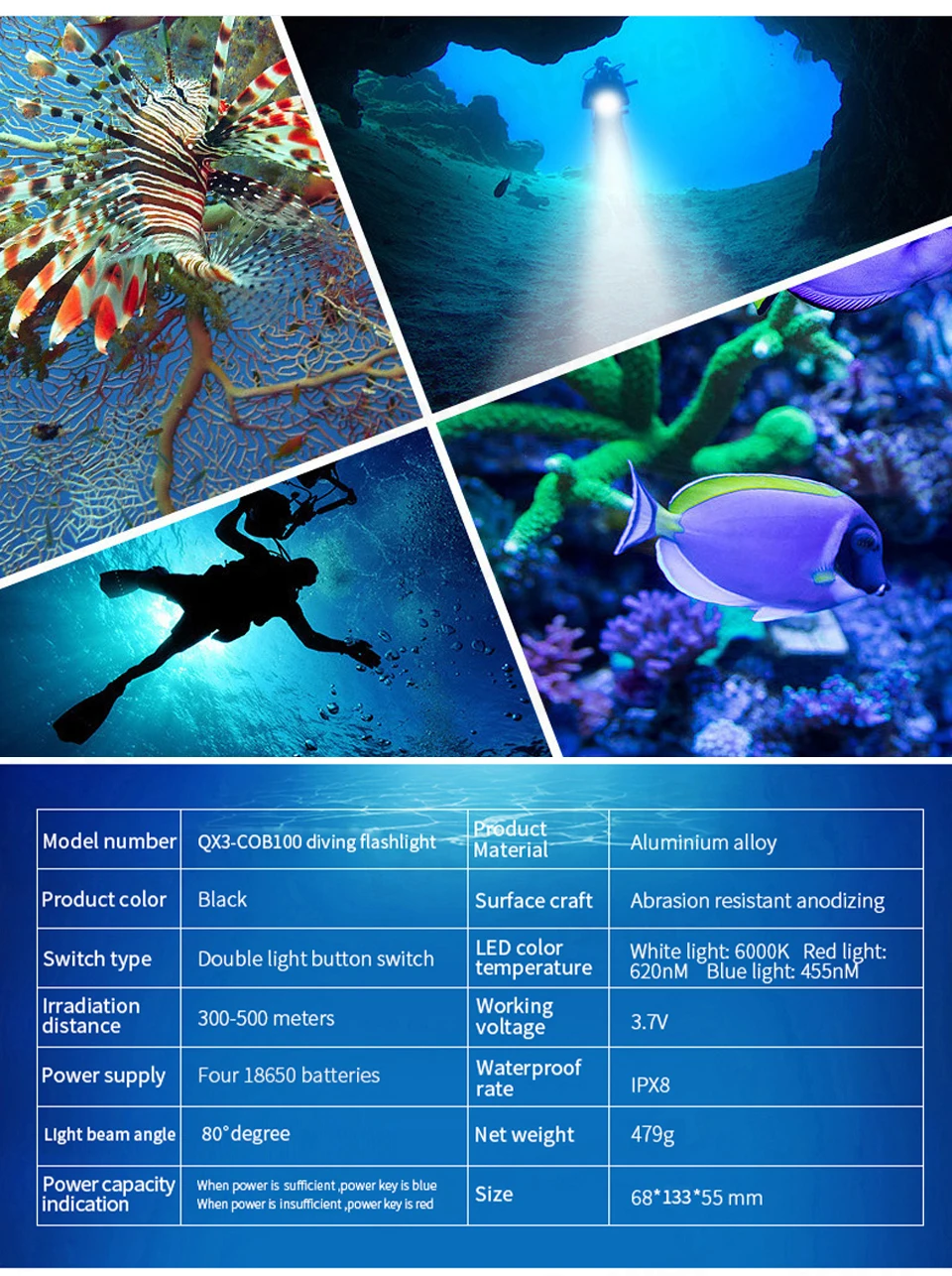 Водонепроницаемость: IPX8 * Угол освещения: 80 градусов