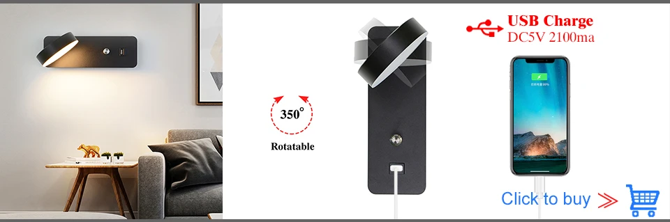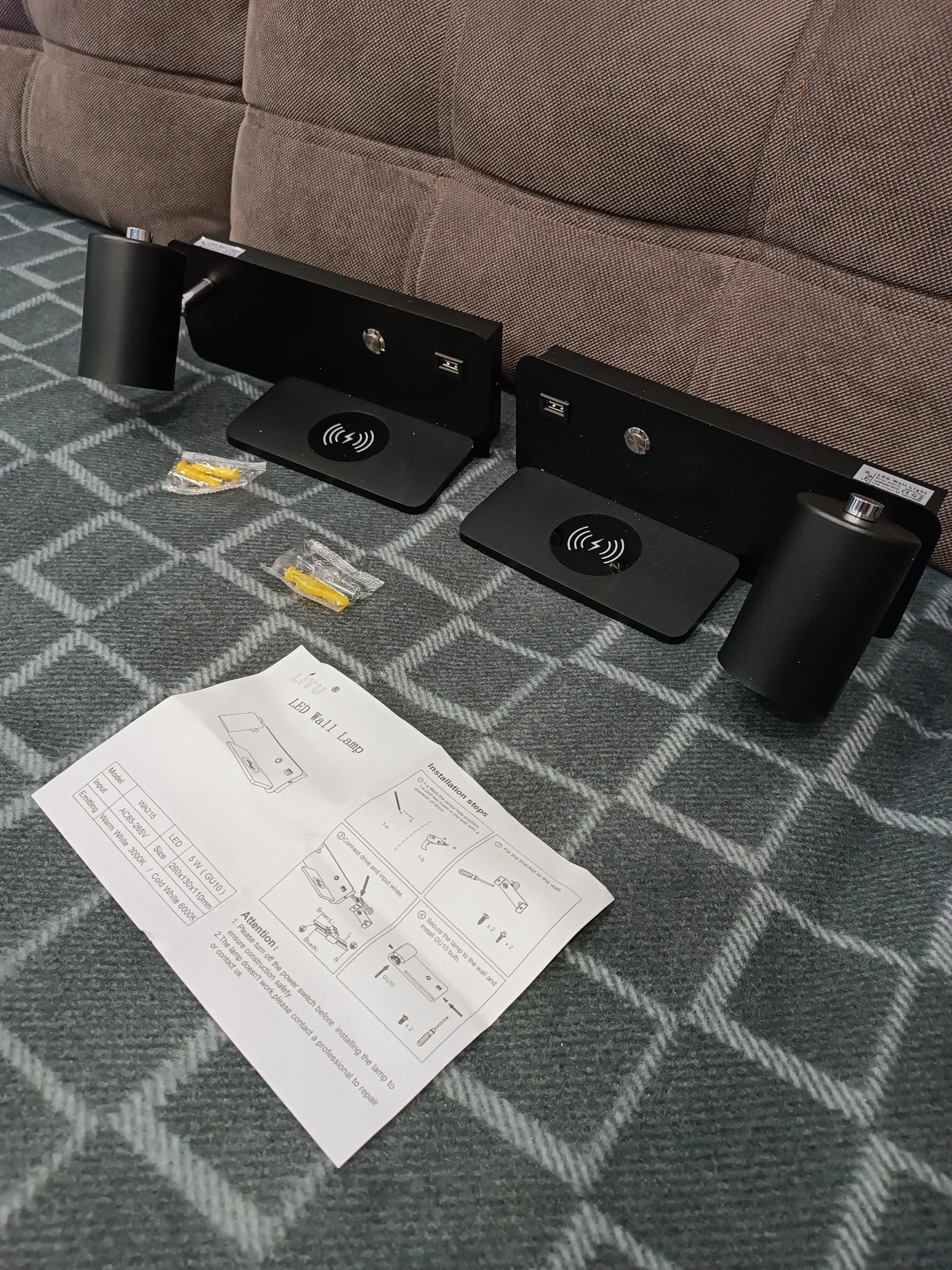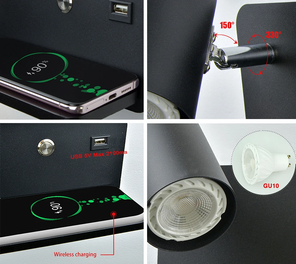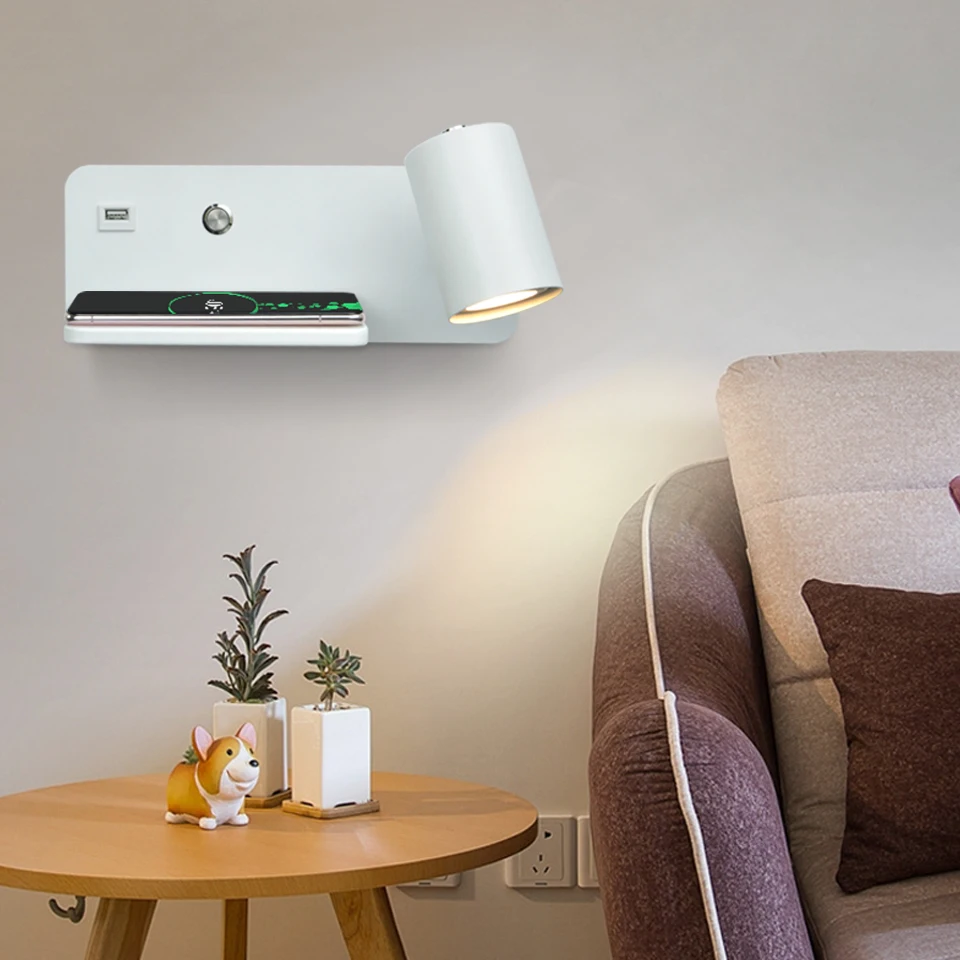 Modern Wireless charging Indoor Wall lamp GU10 5W Blub USB Lighting switch...