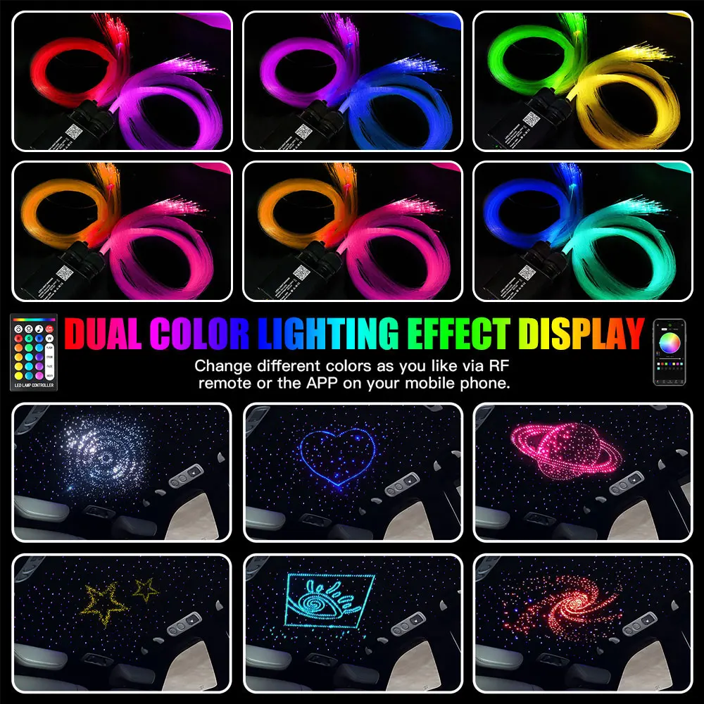 Для автомобиля/дома DIY RGBW Автомобильная крыша Звездные фонари приложение светодиодные оптоволоконные Звездные потолочные светильники комплекты DC12V 1000 шт. * 0,75 мм * 2 м звездное небо оптоволоконное освещение