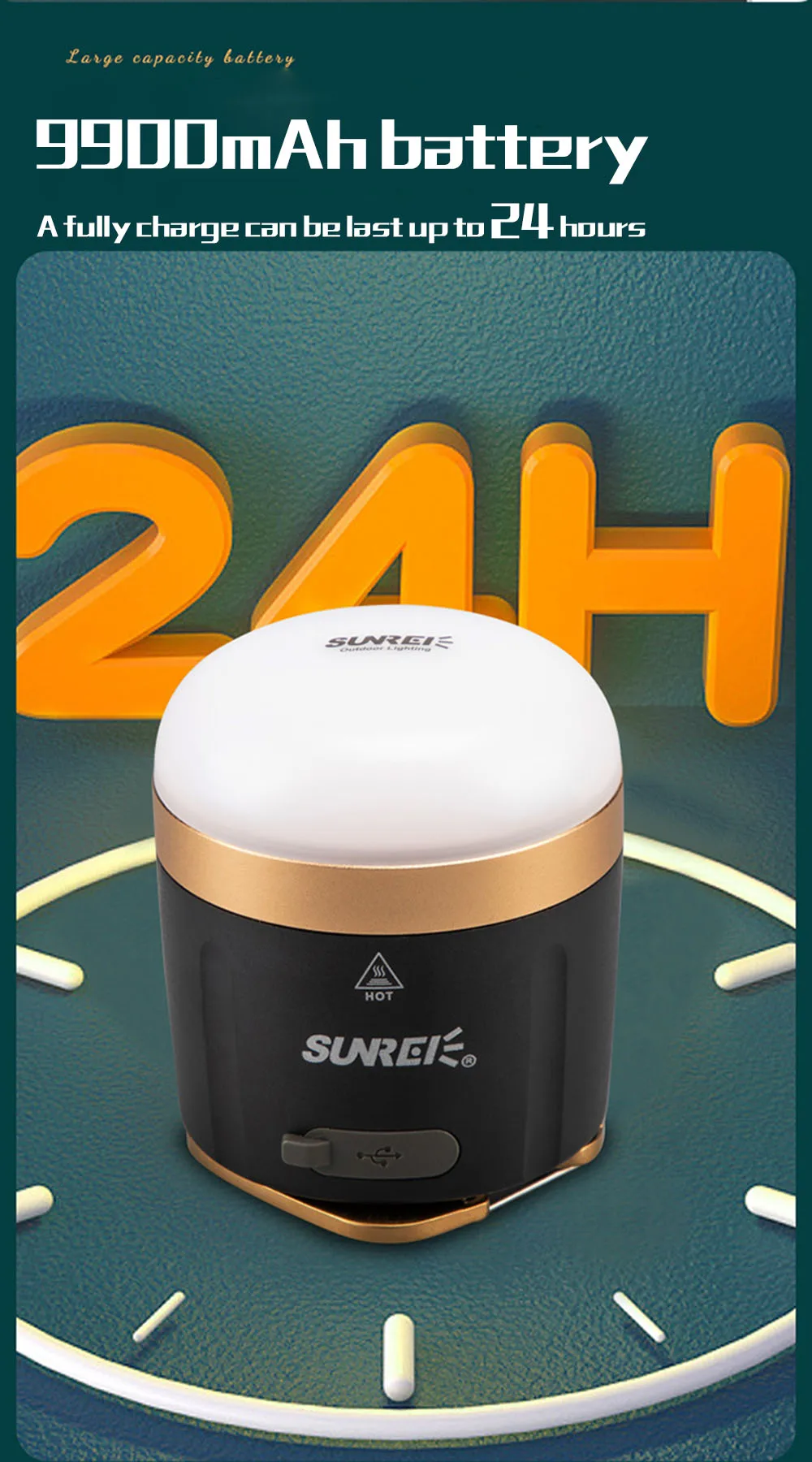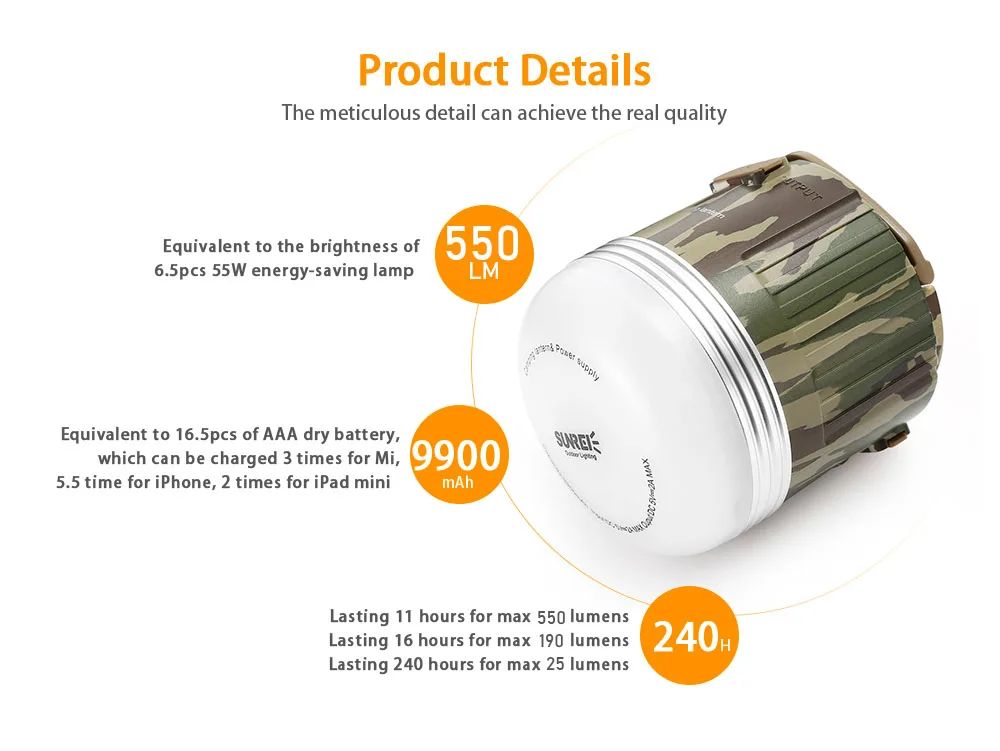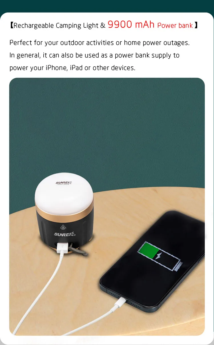 9900mAh блок питания USB перезаряжаемые фонари для кемпинга, встроенный 9900 мАч с питанием от литий-ионной батареи (высококачественный USB-кабель в комплекте), с USB-портом для быстрой зарядки 5 В 2 А, при необходимости заряжайте телефоны, iPad удобно. Поддержка адаптера зарядного устройства 5 В постоянного тока (не входит в комплект).