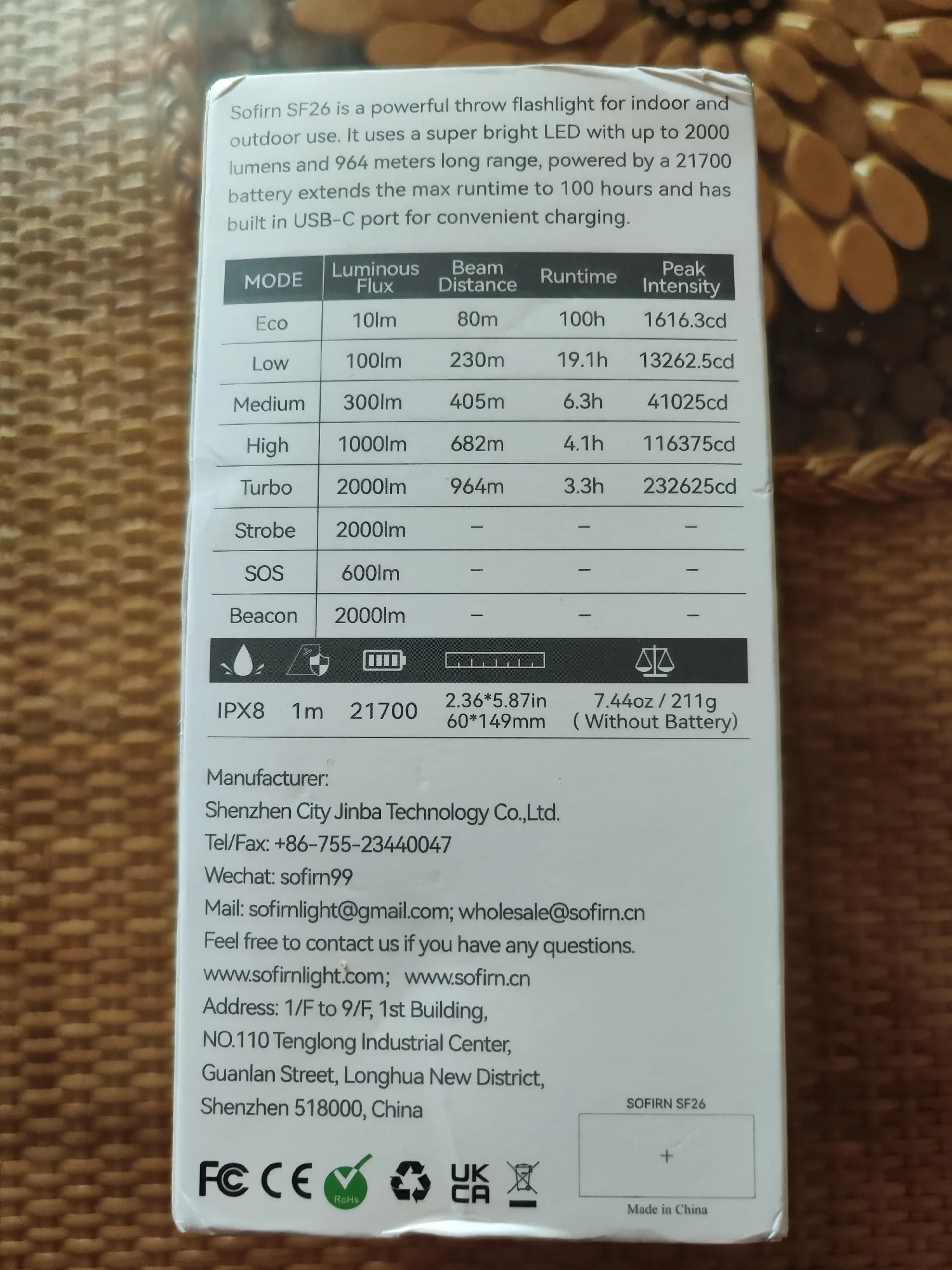 Sofirn SF26 21700 Tactical Flashlight 2000lm 964m Long-Range USB C Rechargeable...