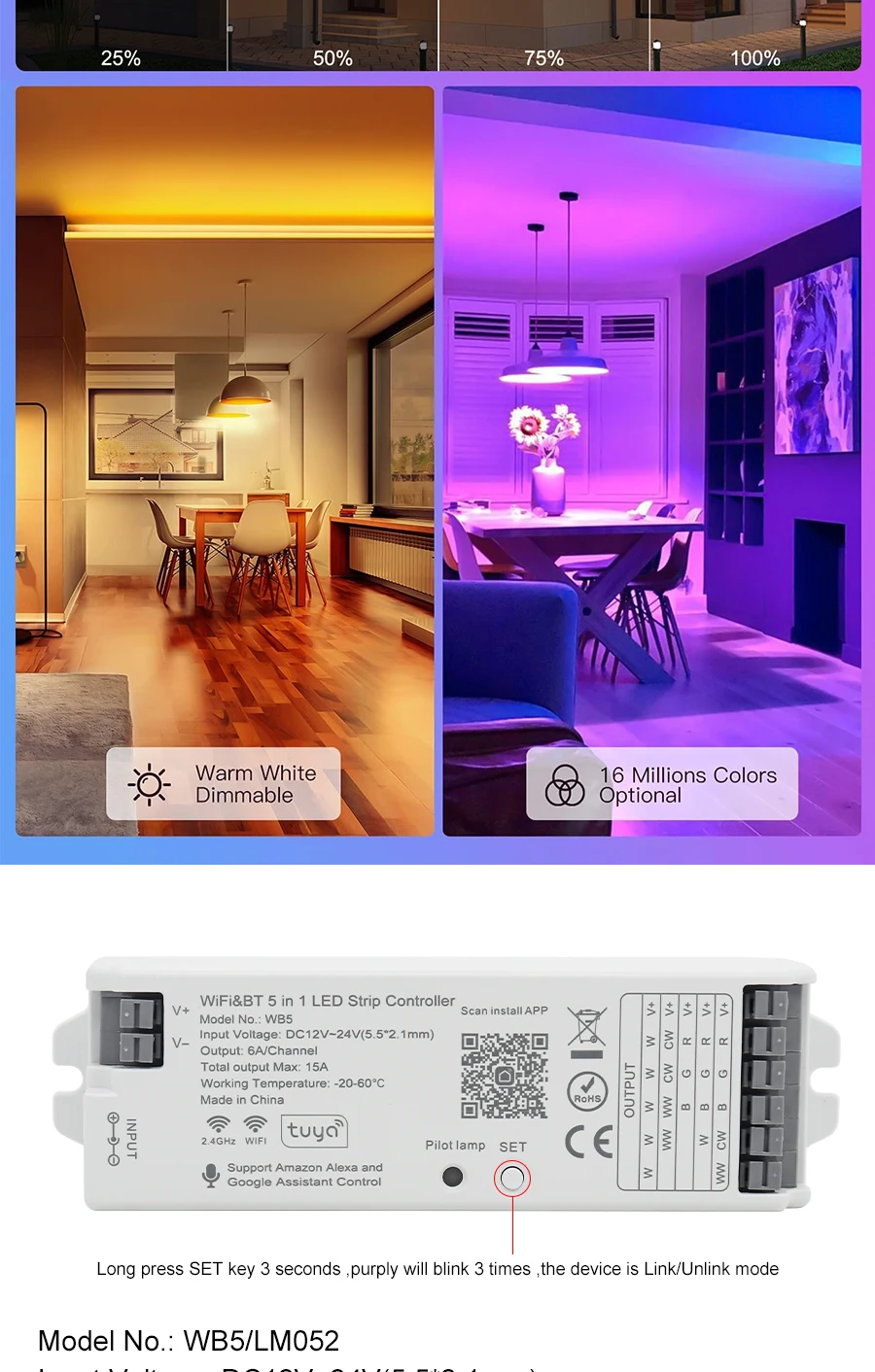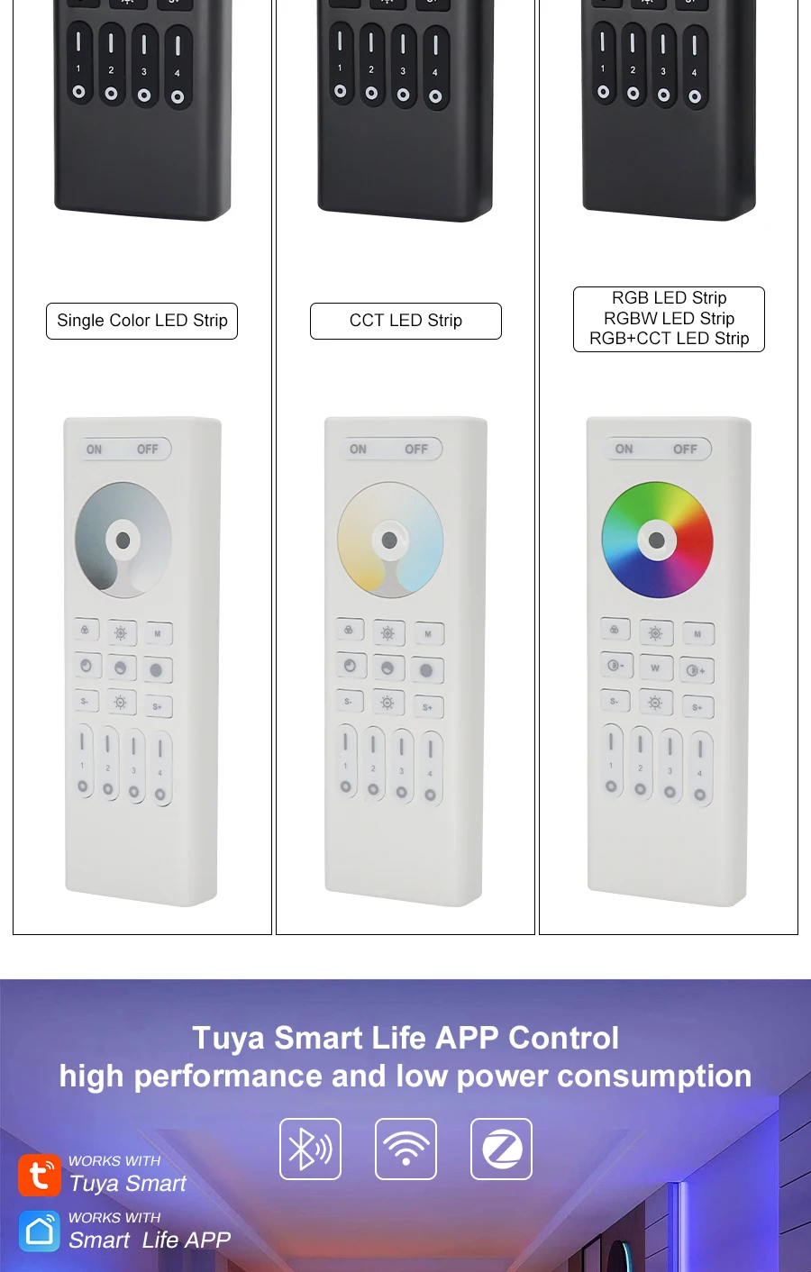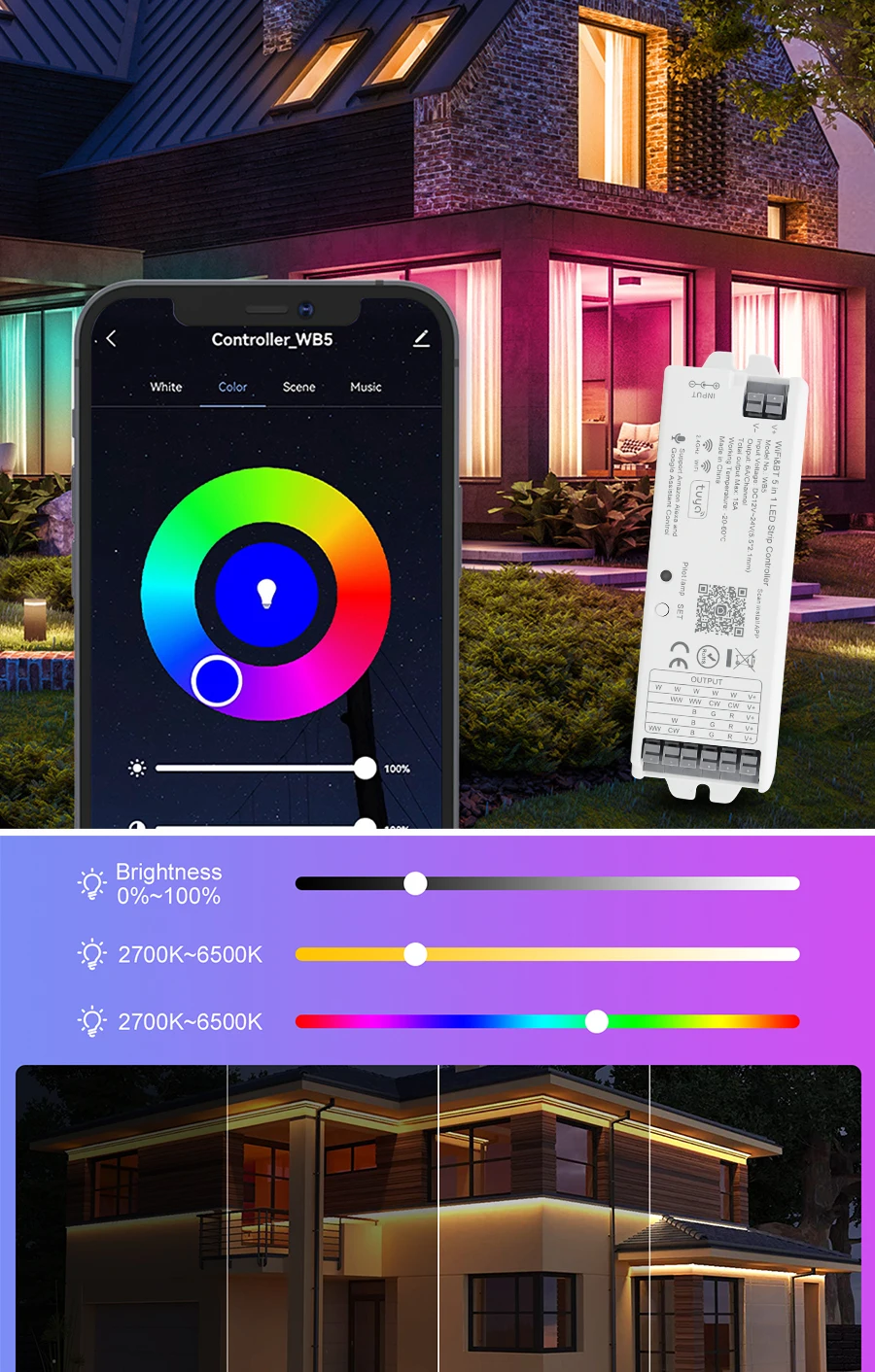 Поддержка типа светодиодной ленты: все светодиодные ленты PWM (одноцветные, CCT, RGB, RGBW, RGBCCT) SMD/ COB