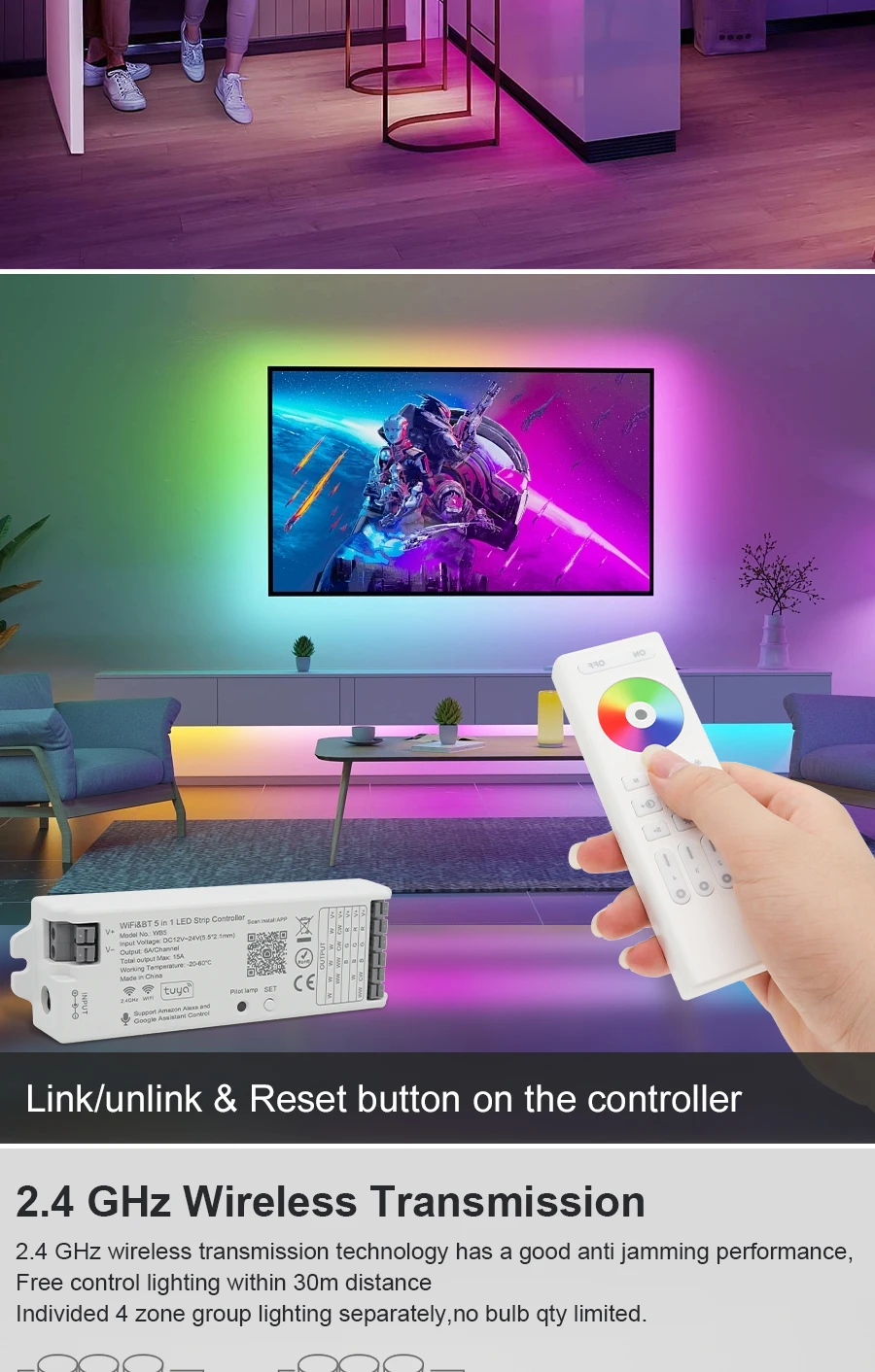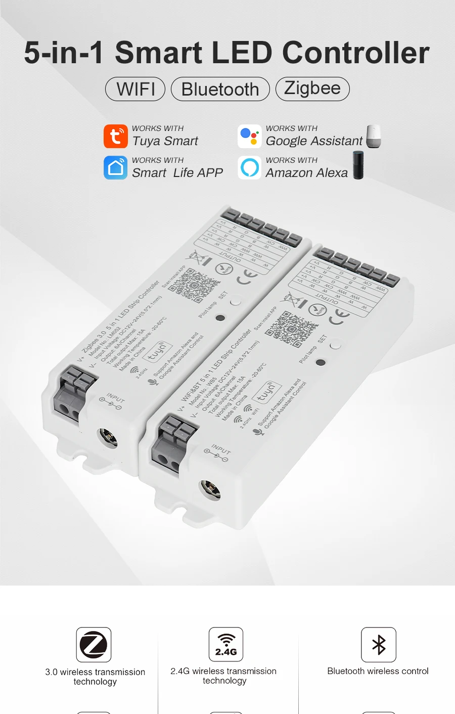 WiFi / Zigbee 5 в 1 светодиодный контроллер Tuya Alexa Google Home Голосовое управление RGB RGBW CCT Светодиодная лента диммер синий зуб приложение RF пульт дистанционного управления 12 В 24 В