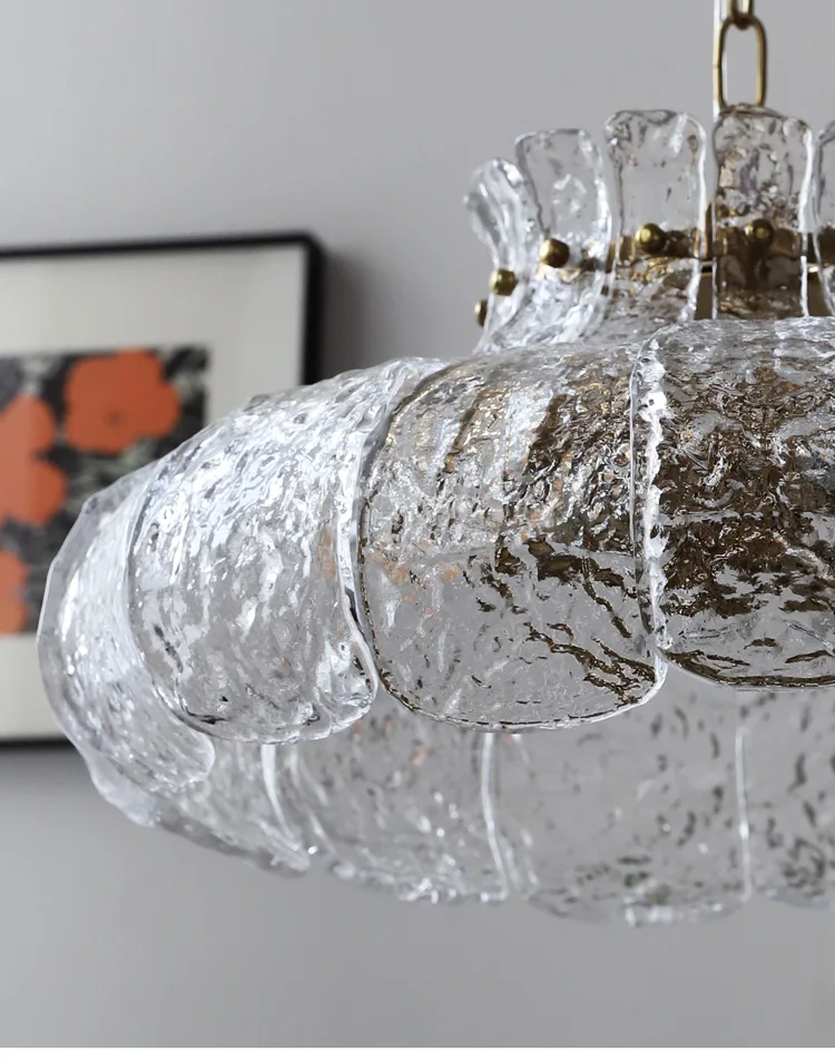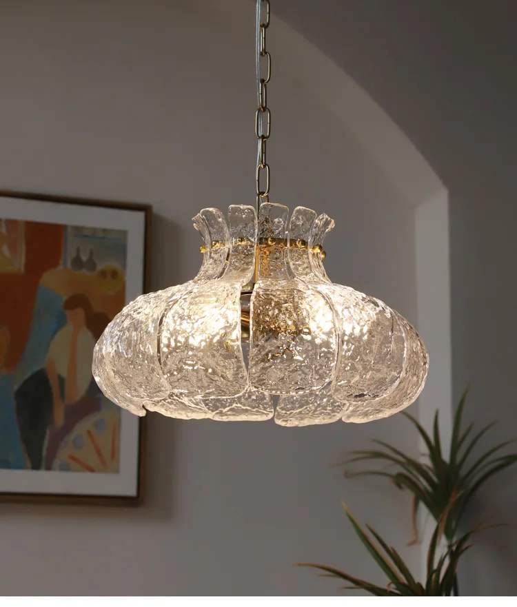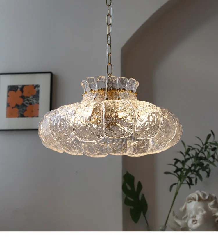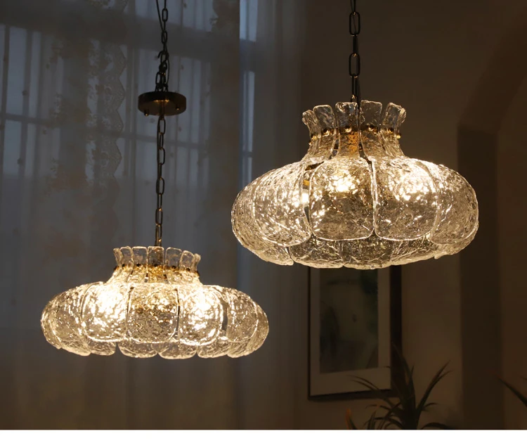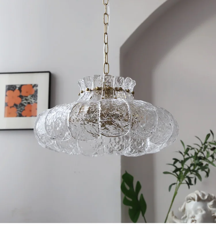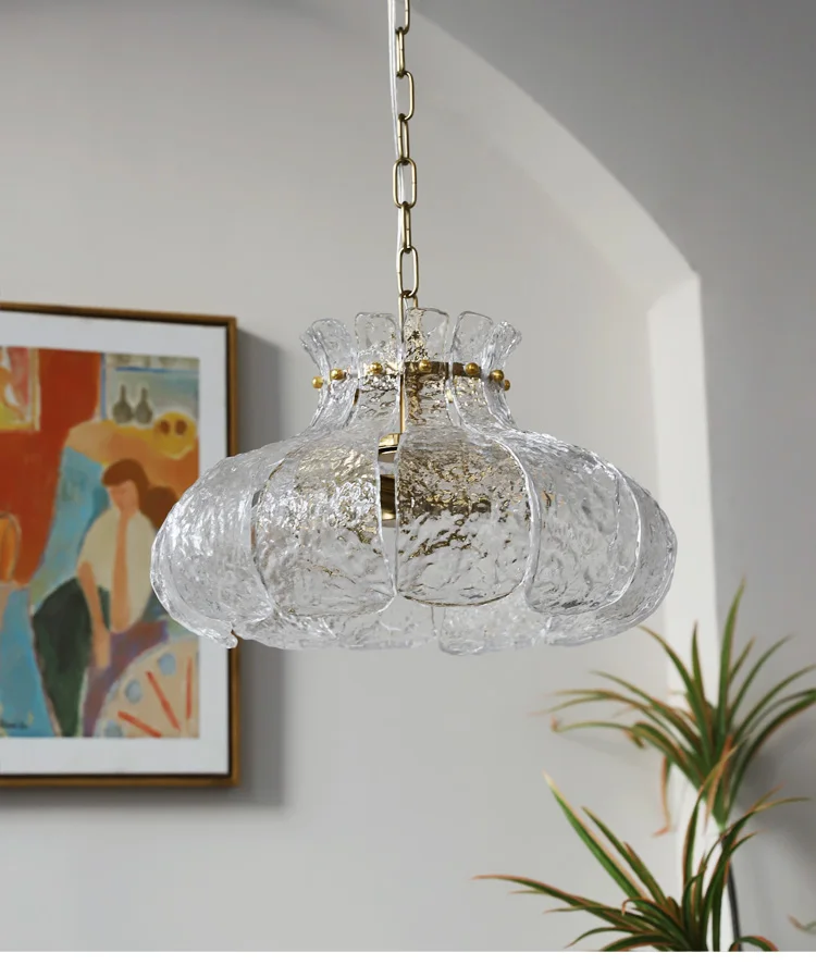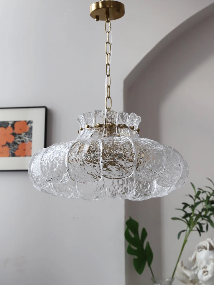 Ice-melting retro glass French dining room lamp American-style chandelier for...