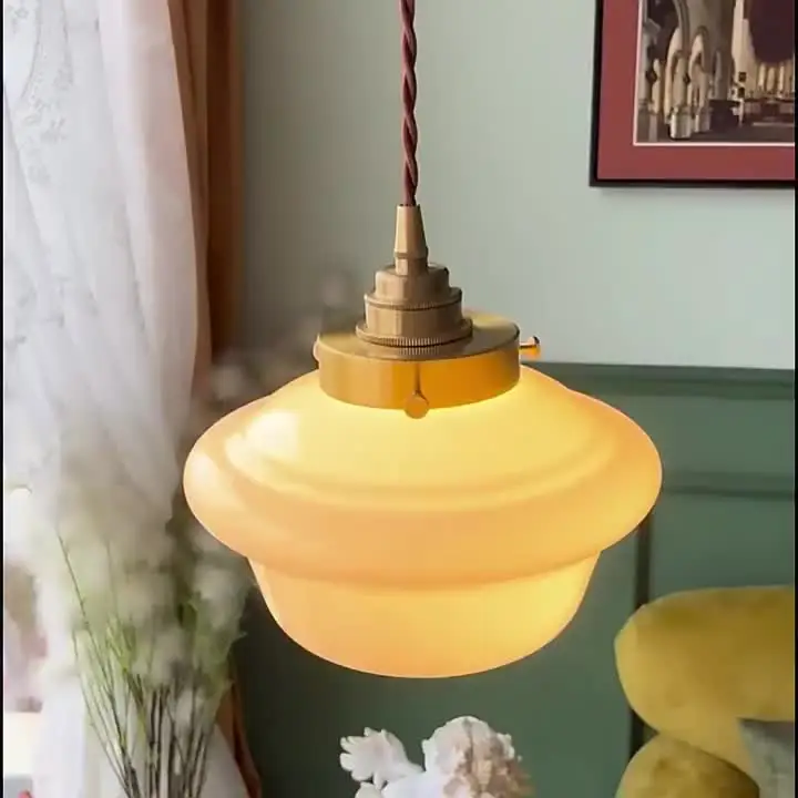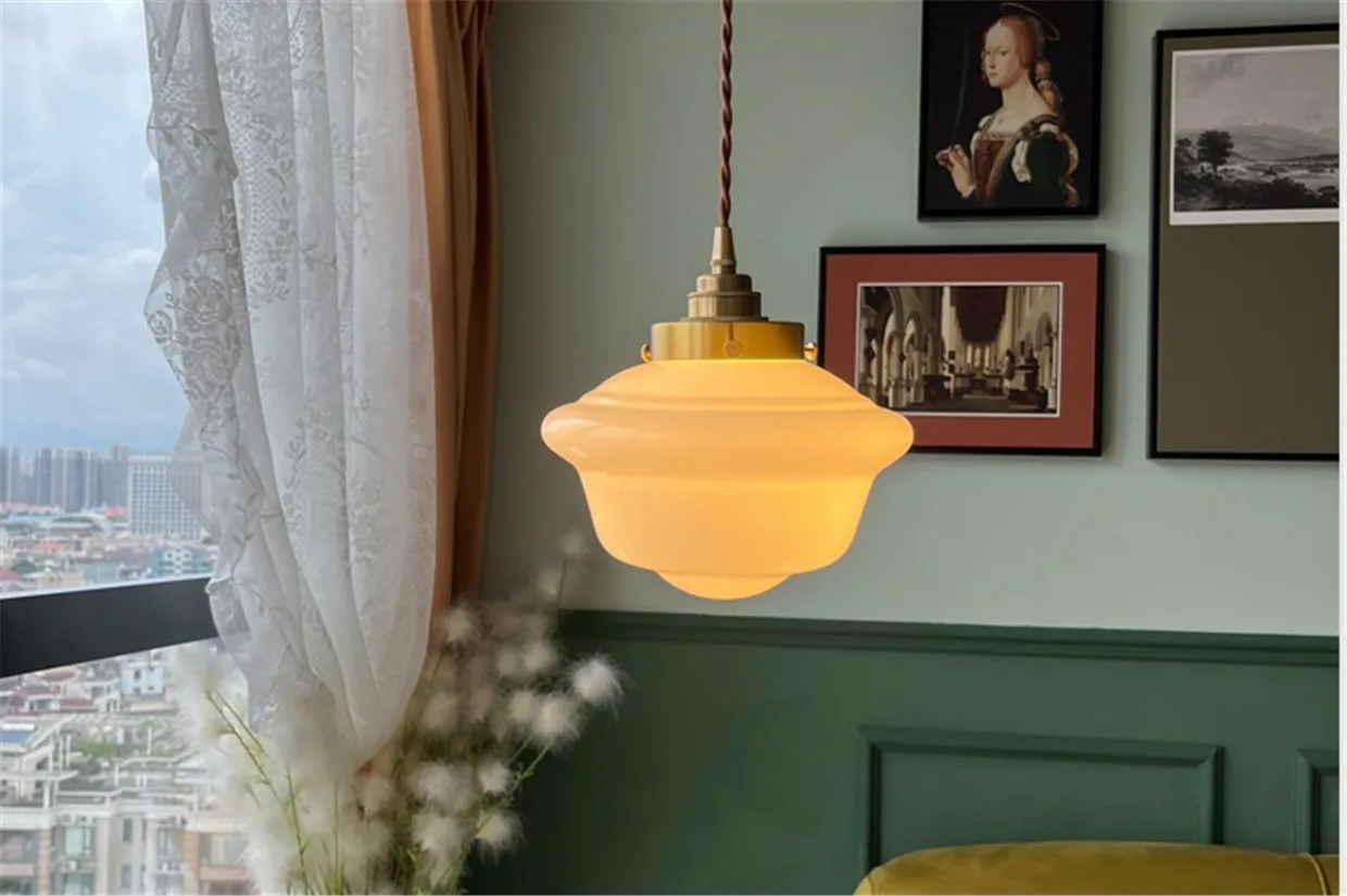 IWHD Milky White Glass LED Pendant Light Fixtures Home Indoor Decor Copper...