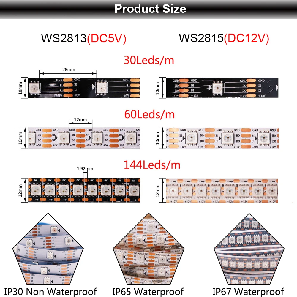 WS2812B WS2811 WS2813 WS2815 30/60/144 leds/m Smart Pixels RGB LED Strip WS2812...