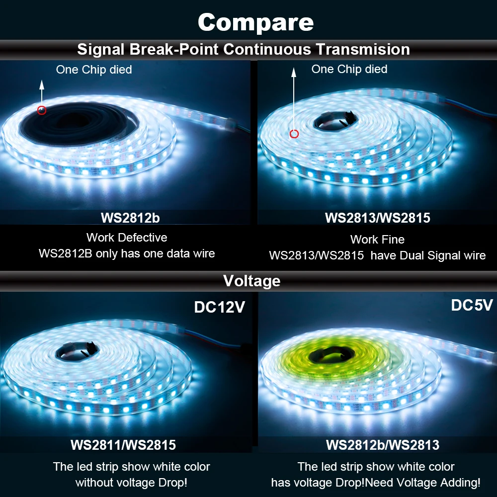 Ресурс светодиодов: светодиод WS2815 (5050 SMD RGB LED со встроенной улучшенной версией микросхемы ws2811)