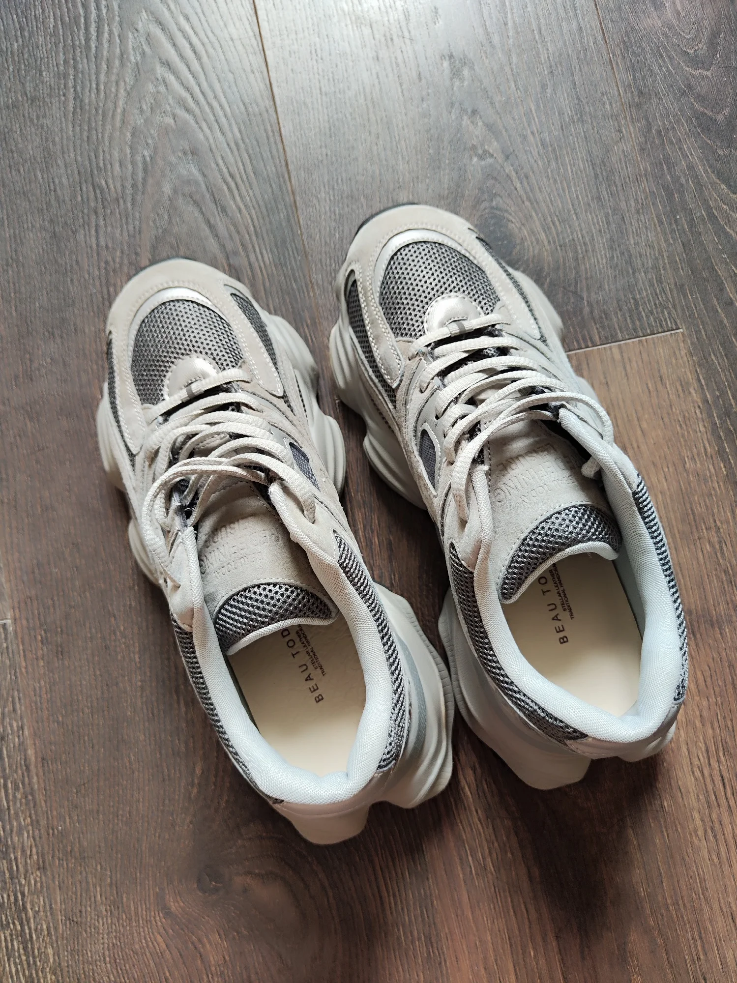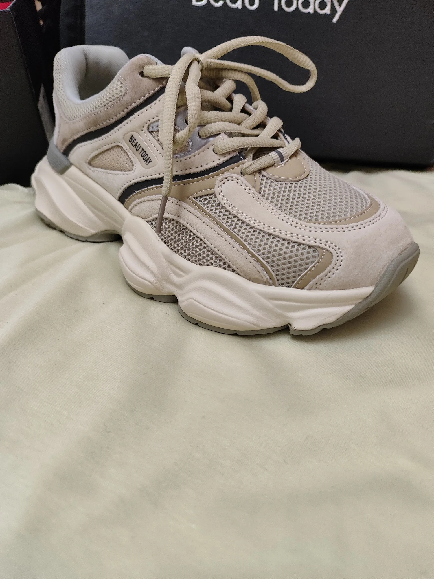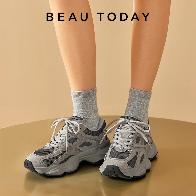 BEAUTODAY Chunky Sneakers Women Mesh Mixed Round Toe Lace-up Thick Sole 2024...