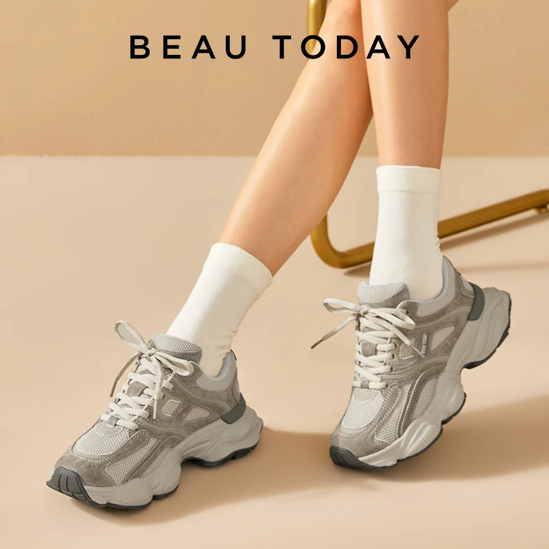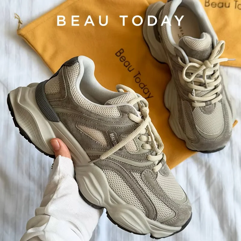 BEAUTODAY массивные кроссовки женские сетчатые смешанные круглый носок на шнуровке на толстой подошве новая дышащая женская спортивная обувь ручной работы HW29A14