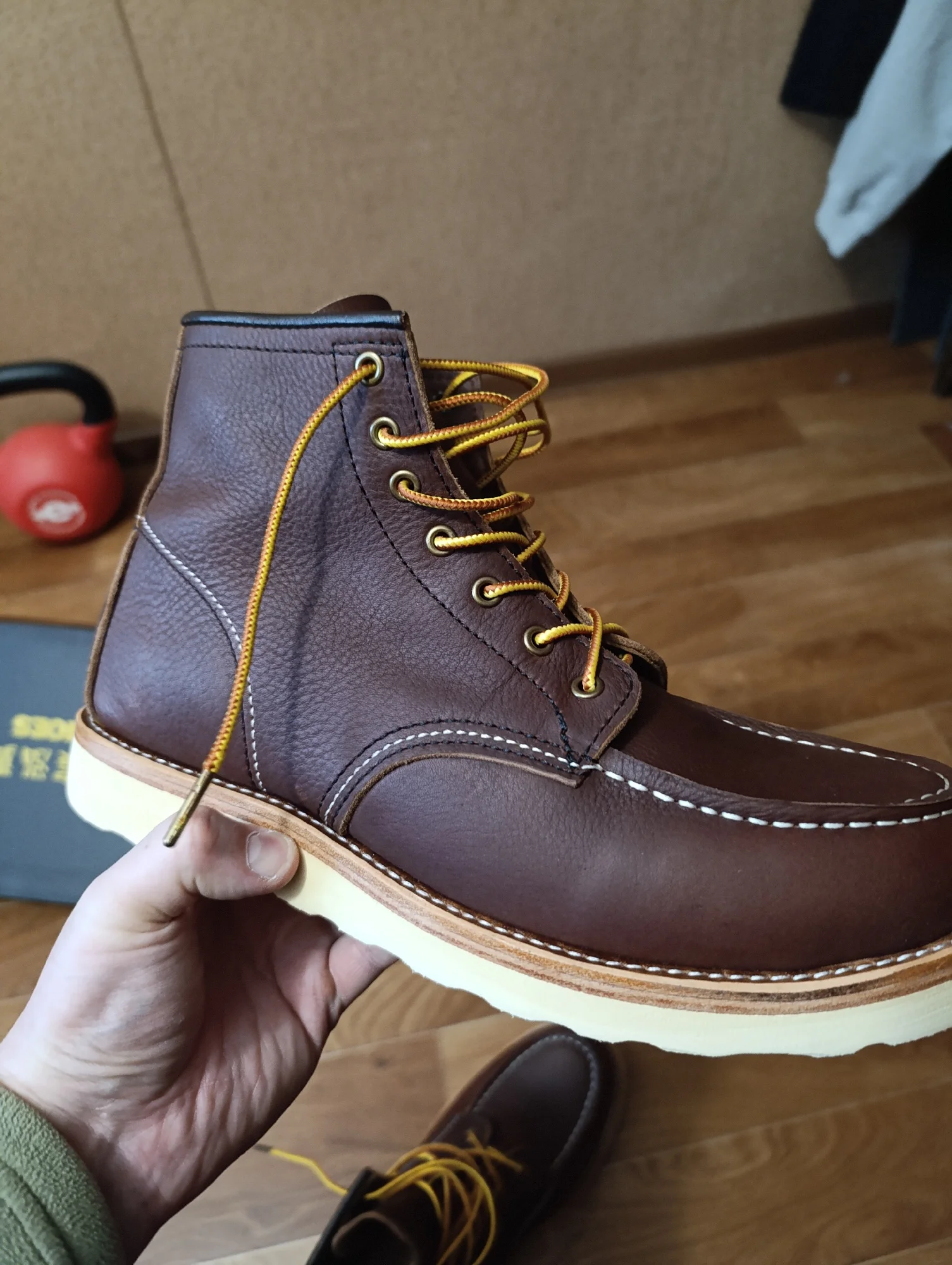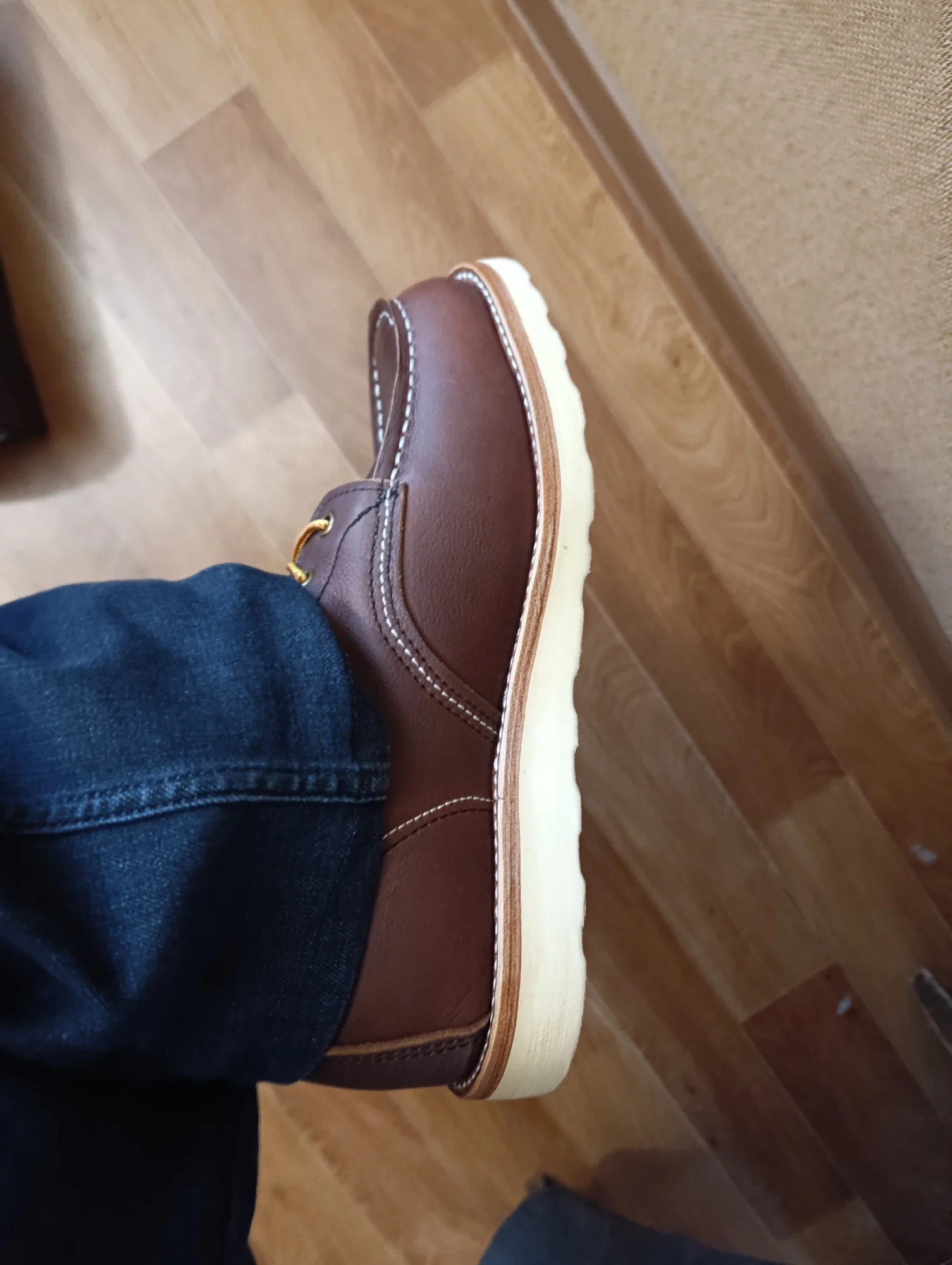 Отличные ботинки, хорошее качество, очень стильные и удобные. Обработал дополнительно водооталкивающим средсвом, вообще не промокали не разу, хотя была слякоть. Размер подбирал по таблице продавца, у меня длина стопы 29.7 см четко по листу А4. Подошел идеально 29,5 тоесть 47 азиатский размер. Продавец обещал положить носки в подарок, но либо забыл, либо отправок было много, не положил. Я ему об этои написал, он предложил заказать одну пару носков и тогда он отправит еще одни пару за свой счет. Я так и сделал, пришло 2 пары отличных носков по цене одной и плюс коричневые и желтые шнурки. Продавца очень рекомендую!!! Фото после двух недель постоянного ношения. В день нахаживаю миниму 10000 шагов, а то и больше.
