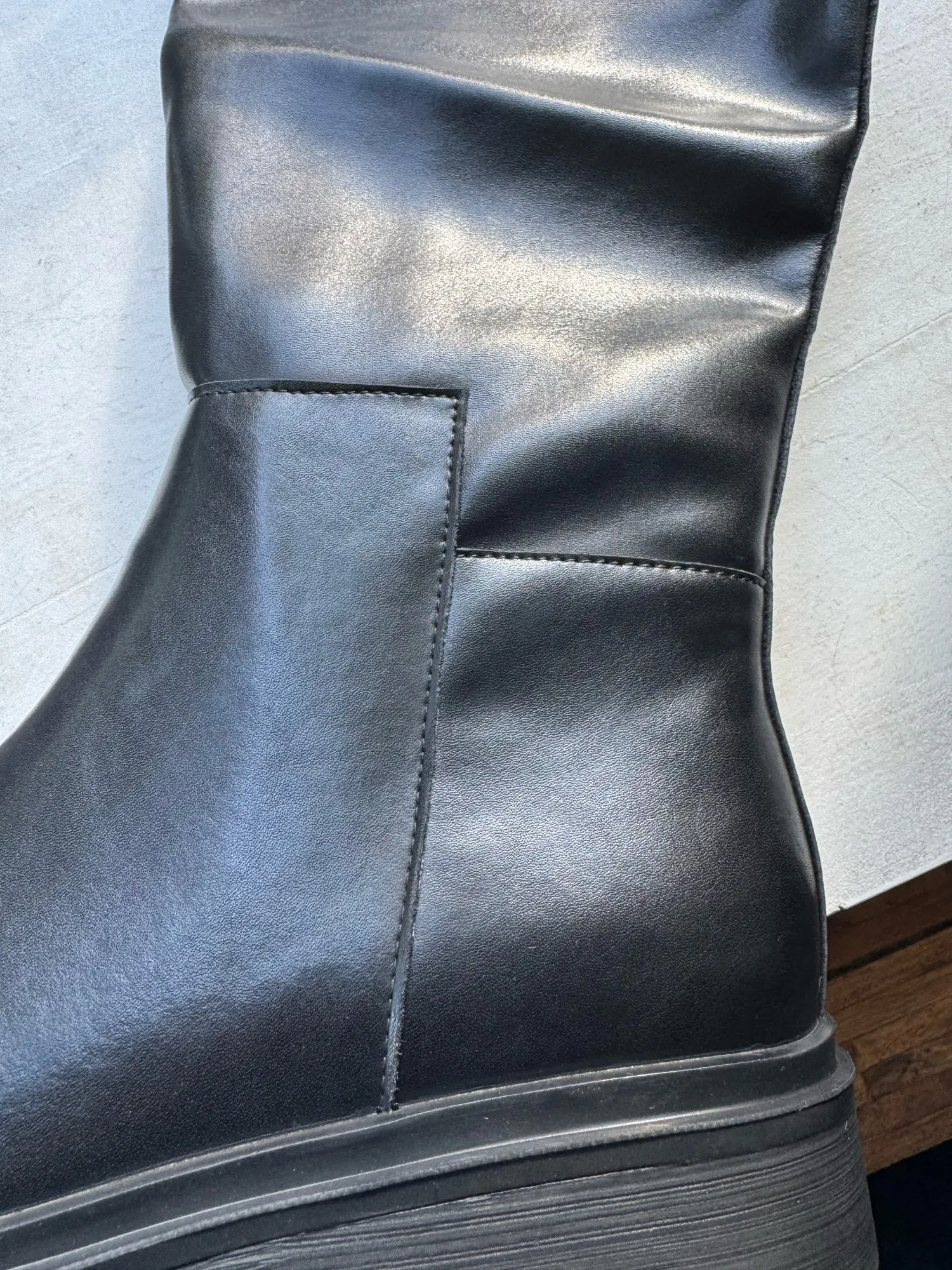 Meotina Women Genuine Leather Mid Calf Boots Round Toe Flat Fashion Ladies Brand Design Long Boot Autumn Winter Shoes Black 43