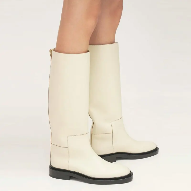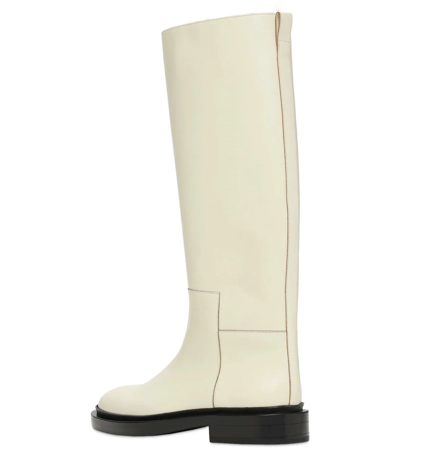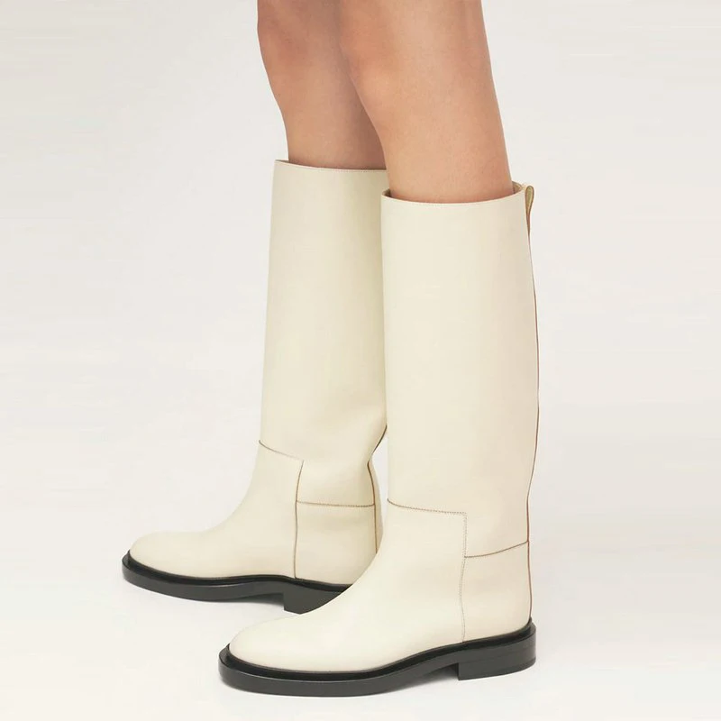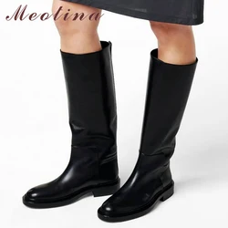 Meotina Women Genuine Leather Knee High Boots Round Toe Flat Fashion Ladies...