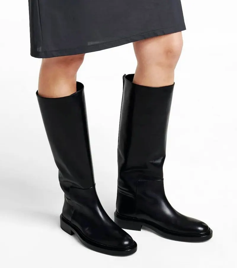 Женские сапоги до колена Meotina из натуральной кожи, с круглым носком, на плоской подошве