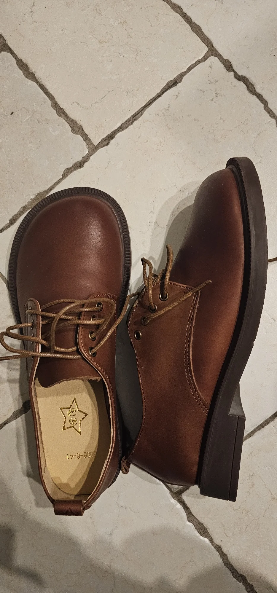 все понравилось!!!! боты - шикарные! размер беру по сантиметрам мой 25,5 см. 41 размер сел идеально! цвет обжареного кофе. кожа натуральная. Стелька -кожа. Очень мягкие. шнурки вощеные. пришли в дутом пакете. в подарок положили крем или воск для обуви (пока не открыла, а по-китайски не читаю ) в общем любовь с первого взгляда и до получения.